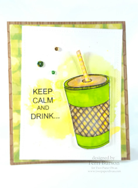 Hello, all my coffee loving friends! I’m so happy to be guesting this month at Coffee Loving Card Makers. I think I’ve been along for the ride since it’s inception and am not at all surprised at the devoted followers, myself included. As a designer for Two Paper Divas Stamps, who’ve been lovely sponsors for some time, I thought I would kick off Tuesdays in July, here at CLCM, with a few projects featuring their stamps, starting with this new release for July, called, “Stuck On You”. As of this writing, it’s not on the site yet, but will be available either July 5th or 6th. I’ve watercolored my image using Tombow dual brush markers. To make my polka dots on the cup pop out, I’ve added a touch of white with a gel pen. It lends to a 3-D look, don’t you think? This set includes several different succulents and sentiments, along with that fun cup.