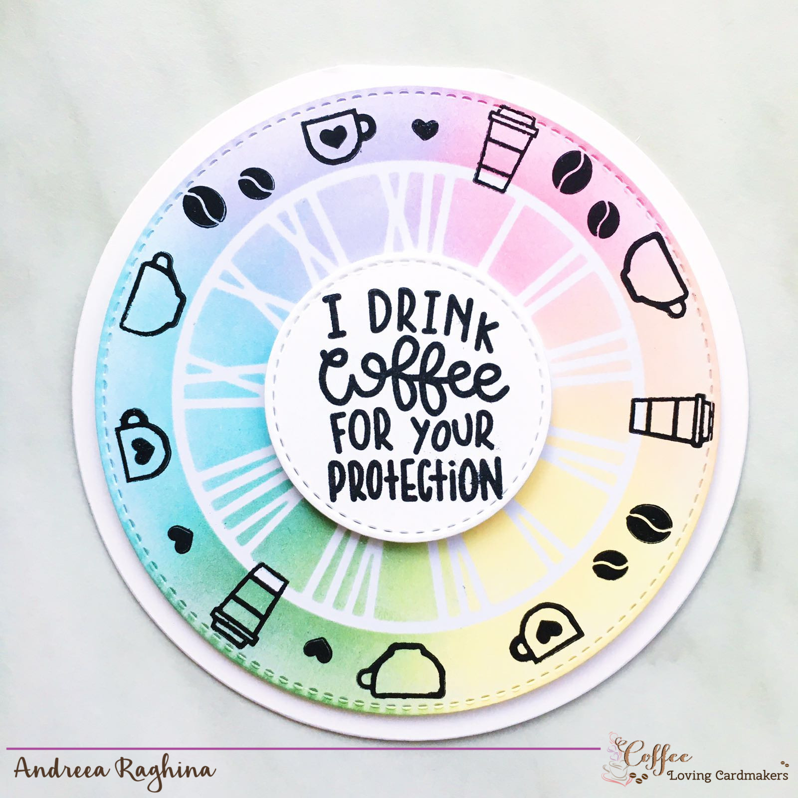 I was inspired by a super cute stamp set by Studio L2E – “Morning cup”. You see, for me coffee is not just a morning cup though, is a round the clock cup. Well, ok ok .. I don’t drink coffee all the time, sometimes I drink tea and sometimes I sleep.