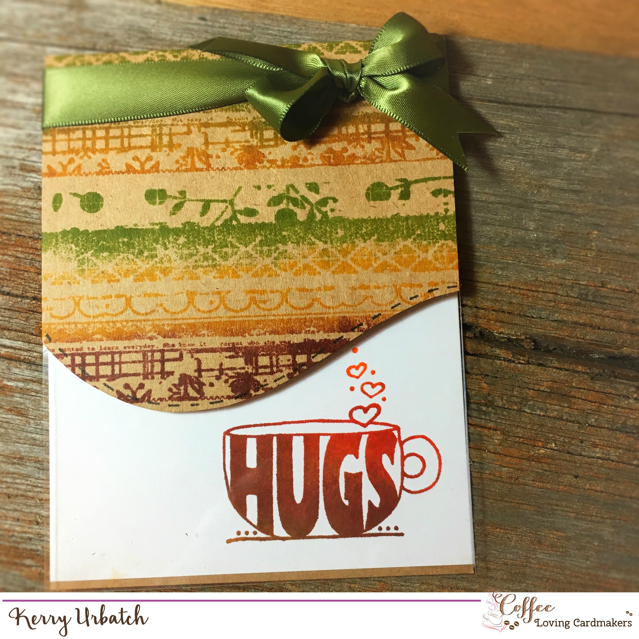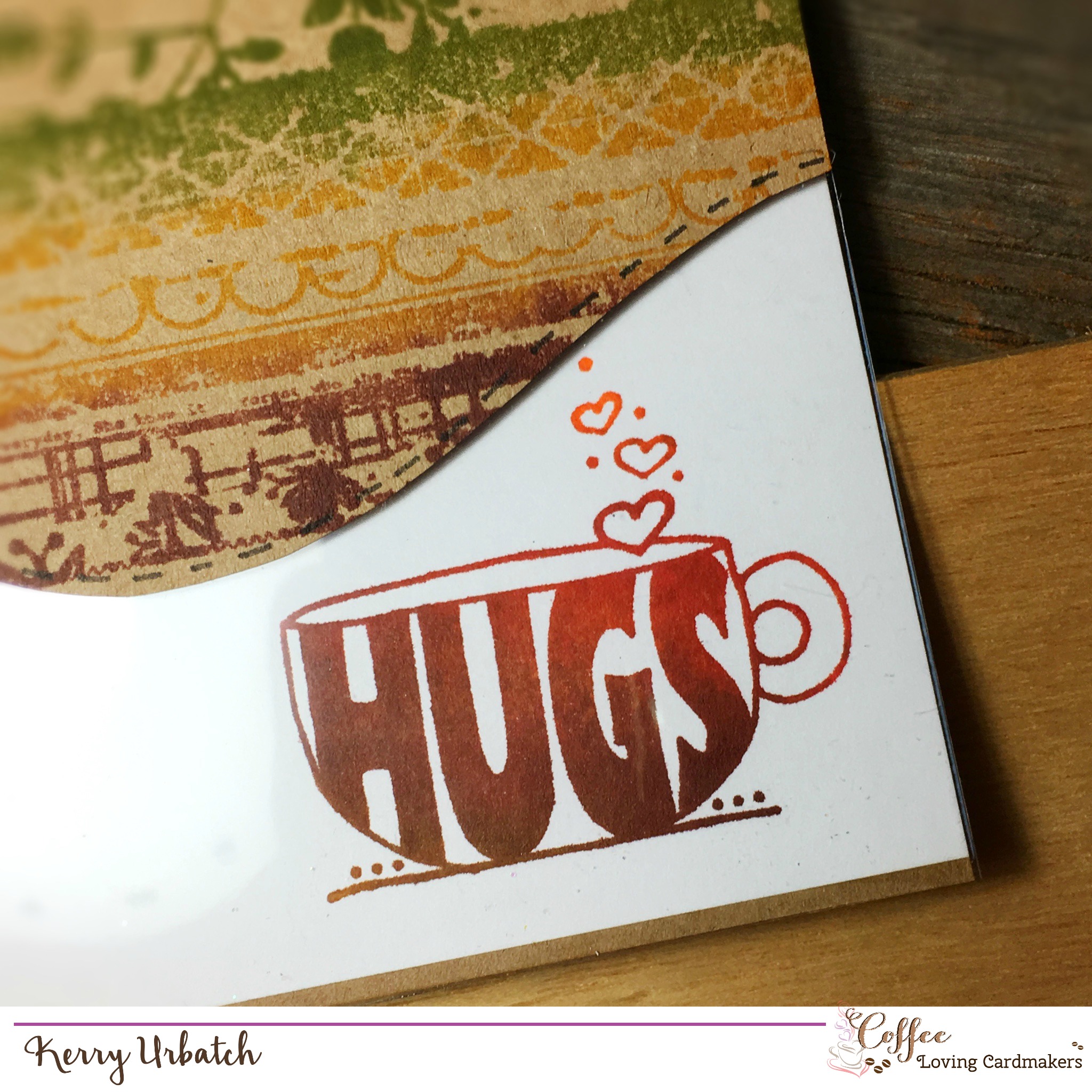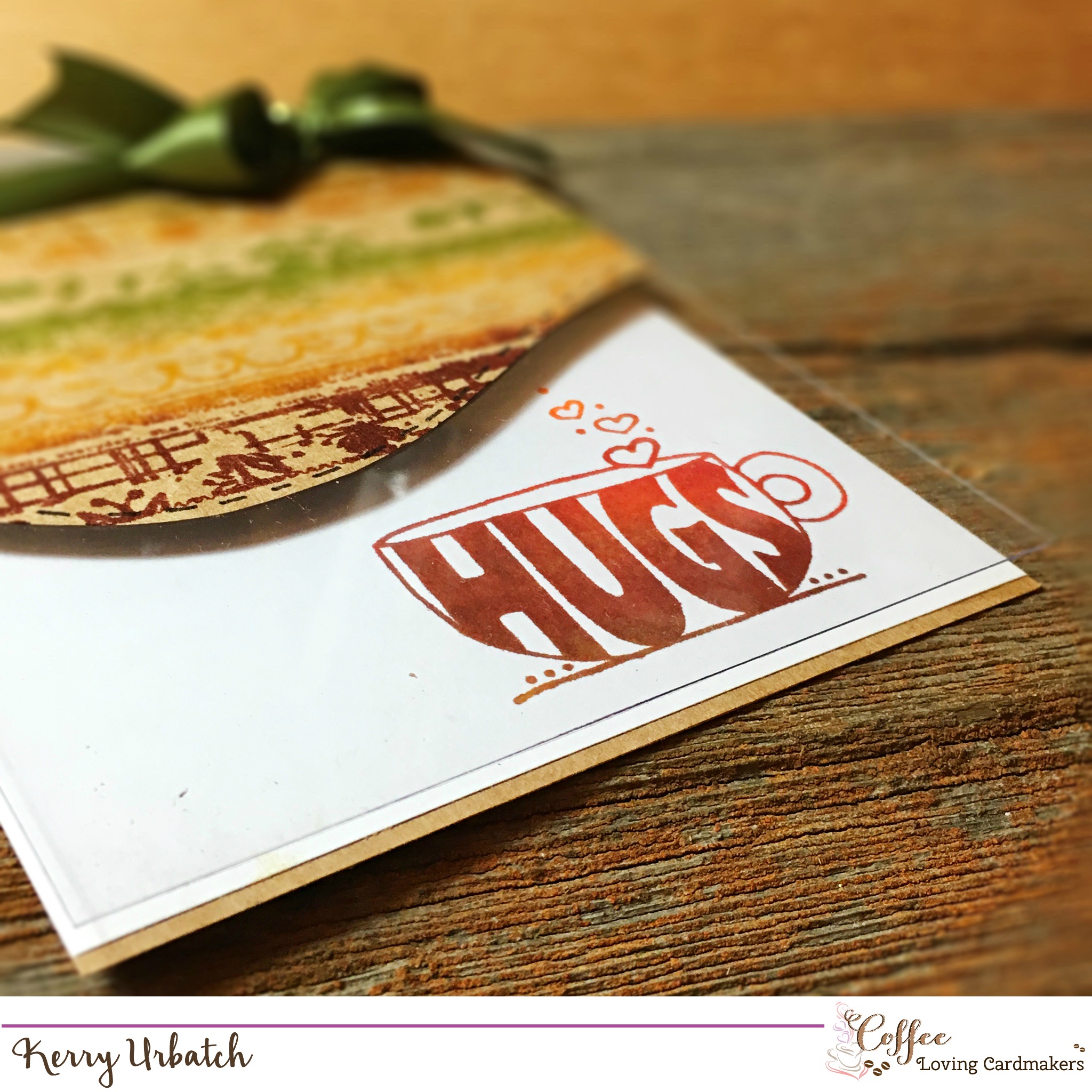 Hello there Coffee Loving Friends!  It’s Kerry here with another Sunday Sip and Share post! The fall months are some of my most favorite months of the year!  I love the colors and the cool air so much!  I decided to continue our embrace of FALL by creating another fall card. Take a peek at my HUGS card.  It headed out to a crafty friend who just lost her father. It’s during these rough days that I wish I could just jump through the phone and give BIG squishy hugs. This card (and some crafty therapy treats) will have to do.