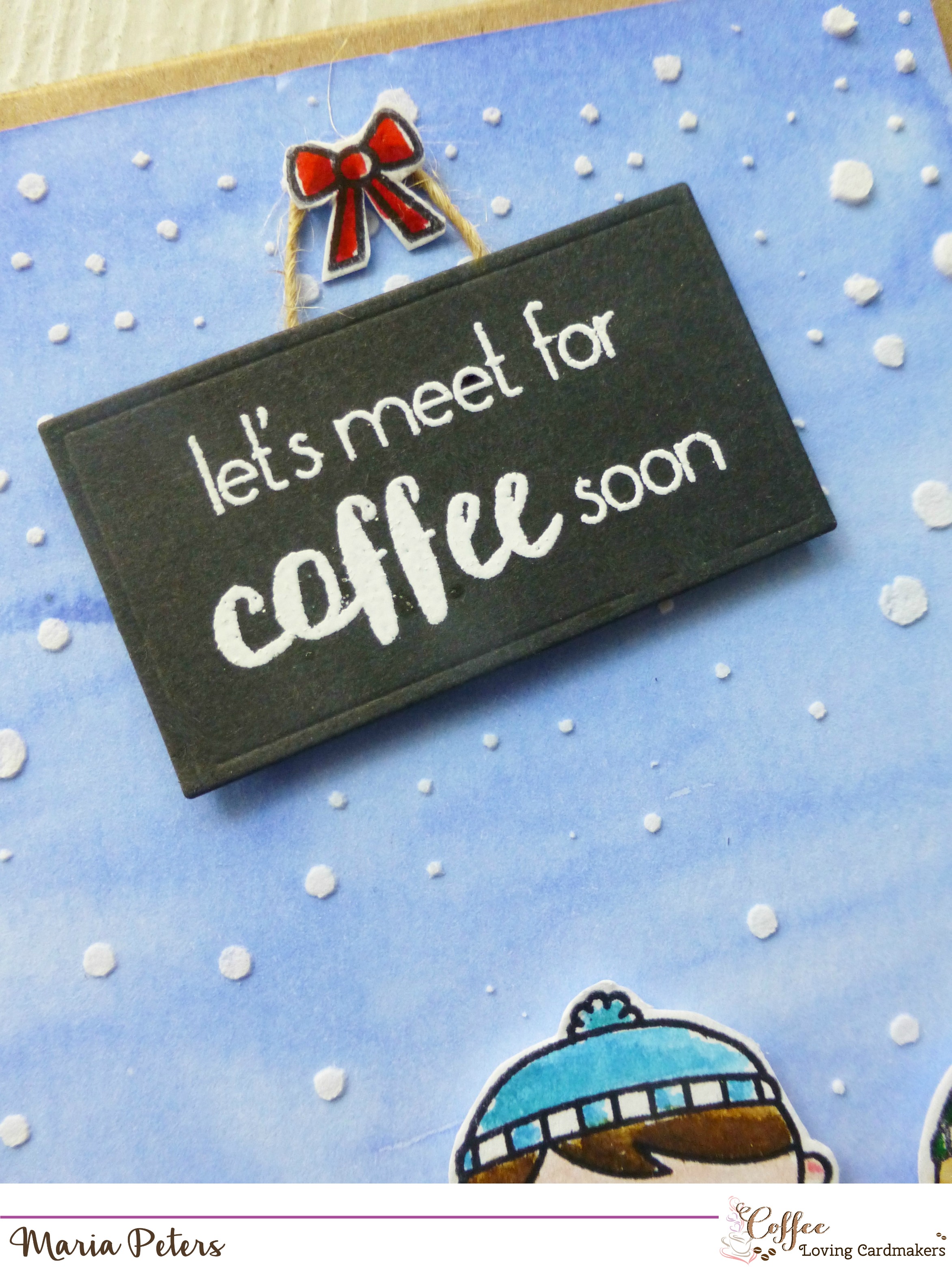 Such a heart-warming card! Love the idea of going for a walk in the snow, with good friends, and sharing a hot coffee afterwards! Your snowy sky is so pretty!! Love this, Maria!