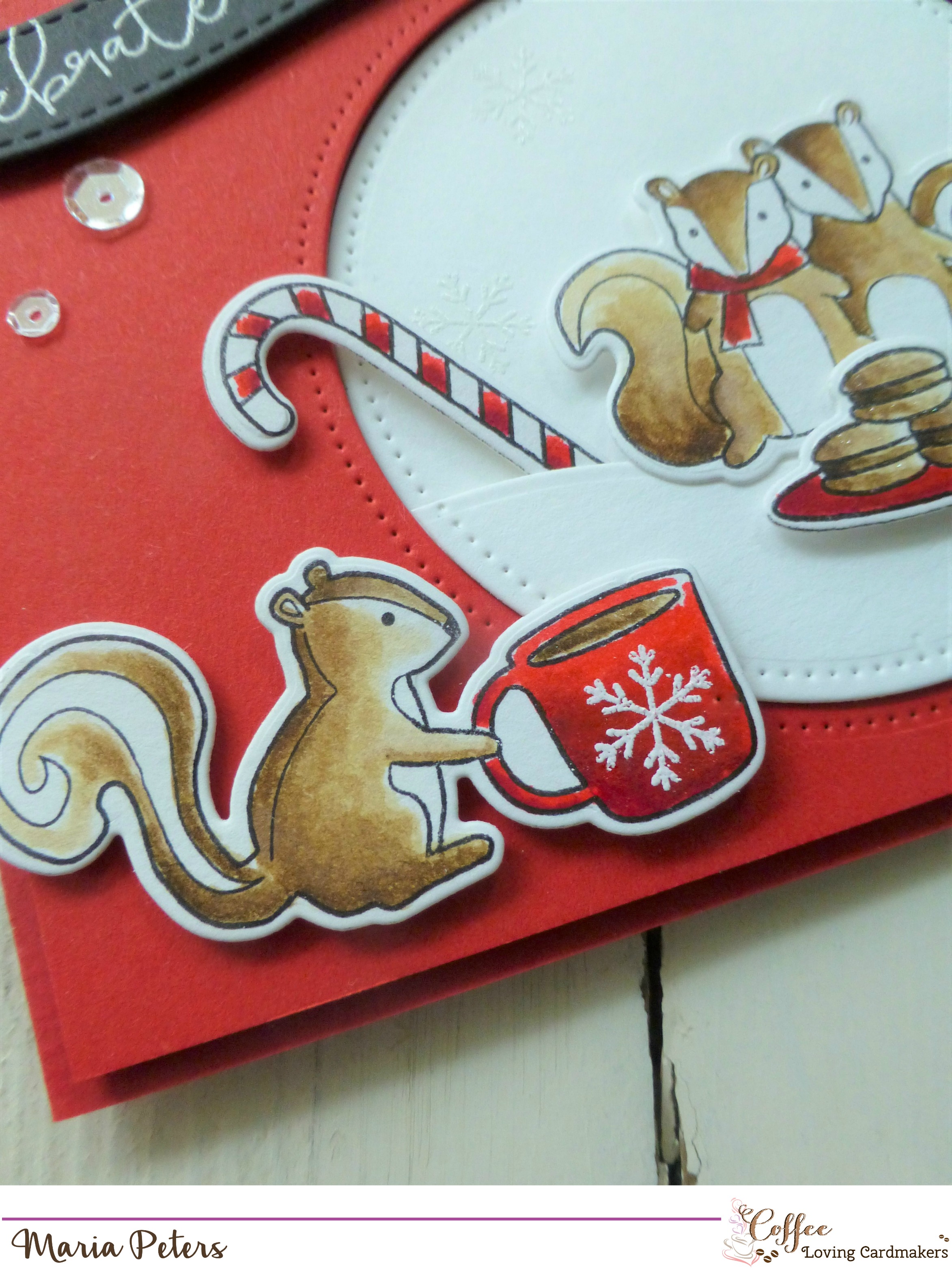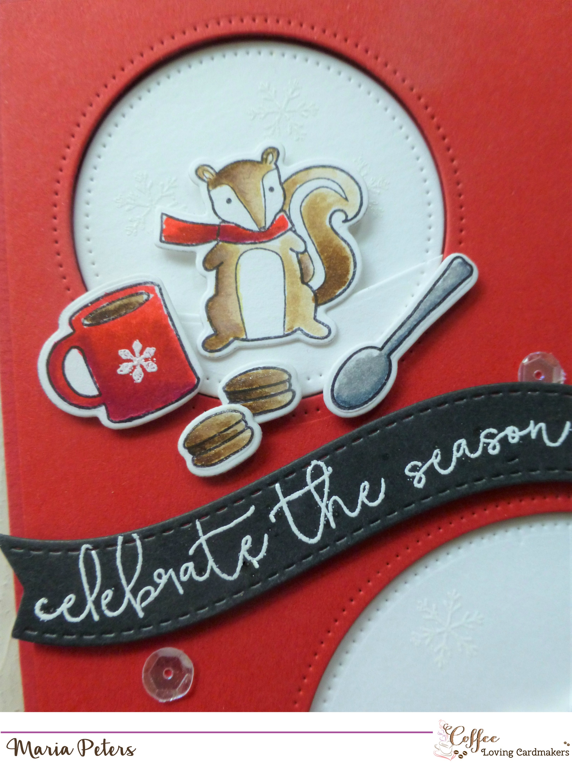 I embellished the card with my favorite sequins by Prettypinkposh and add some glitter to the Coffee Cups and the Macarons using the Spectrum Noir Sparkle Pen.