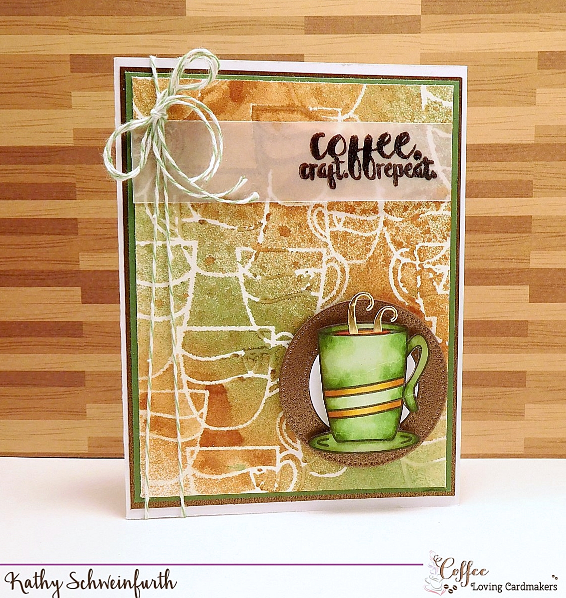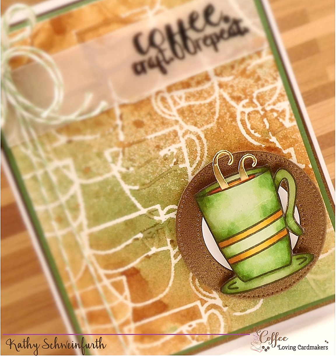 For my card today, I started with Create a Smile Lots of Mugs stencil (which I was so glad to have found because it was sold out everywhere I looked!) and spritzed with shimmer mists. The mug is from Mint Owl Studio Coffee Craze set (love this set!) and the circle die behind the mug is from My Favorite Things Stitched Circle Frames die set. And that wonderful sentiment is from Altenew Coffee Ring stamp set