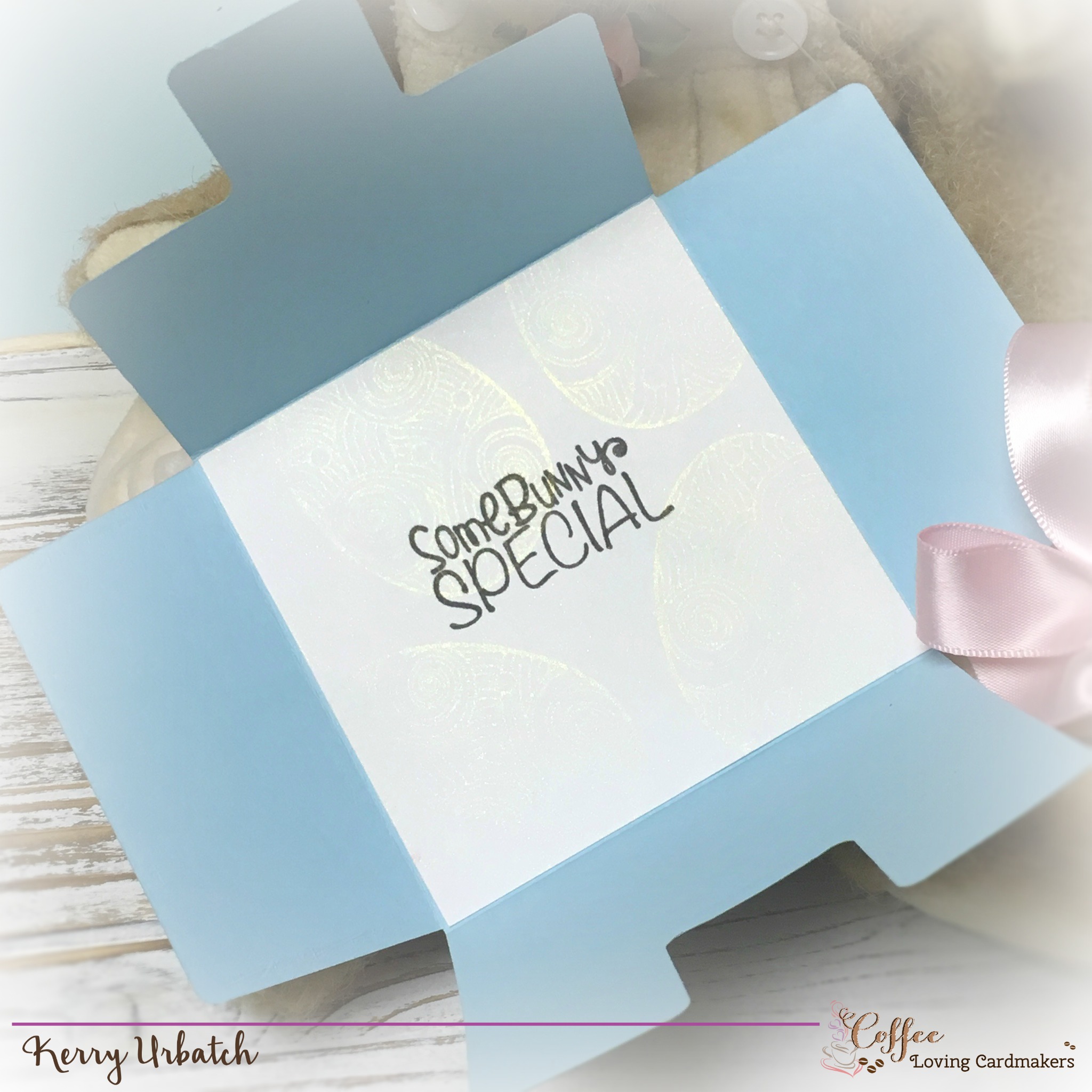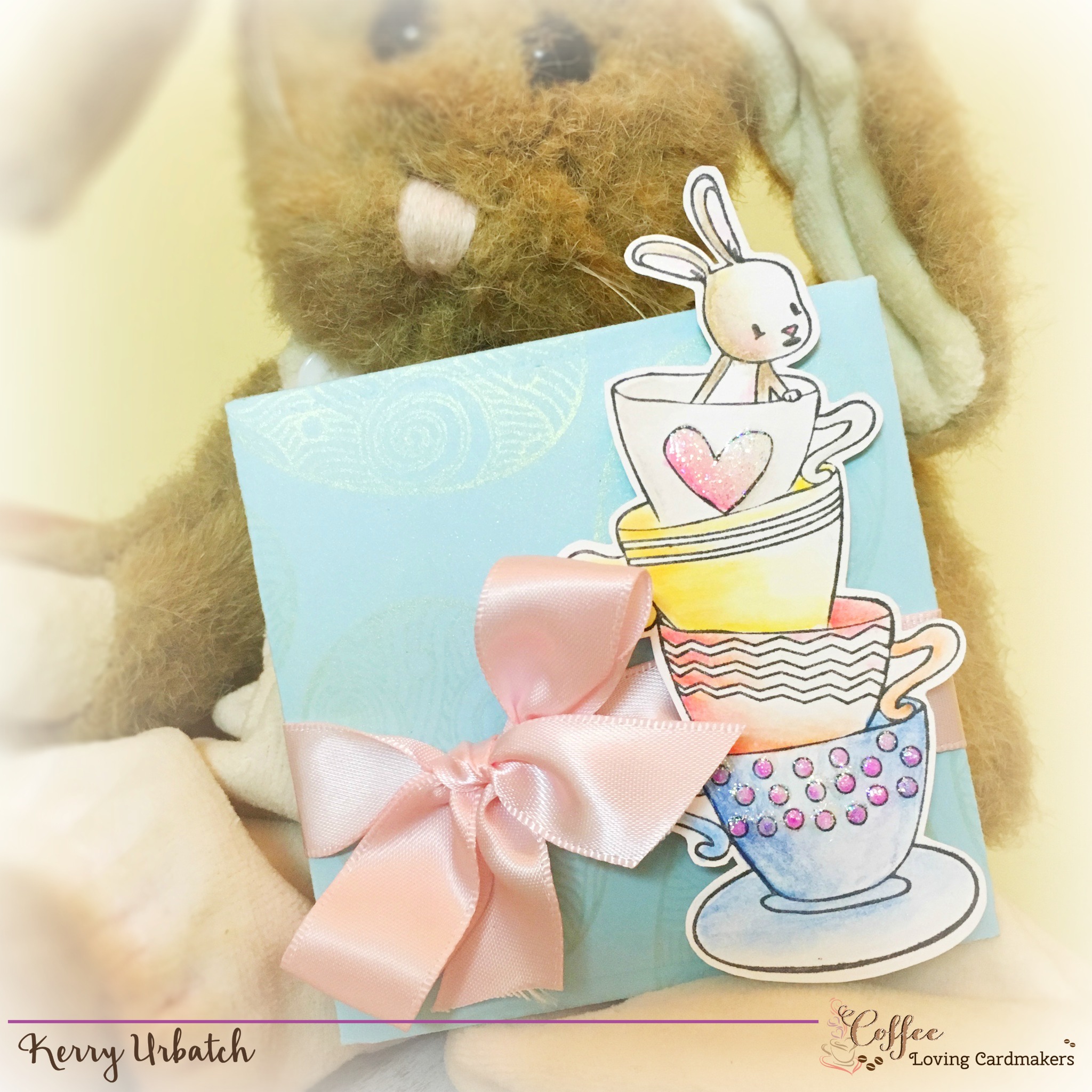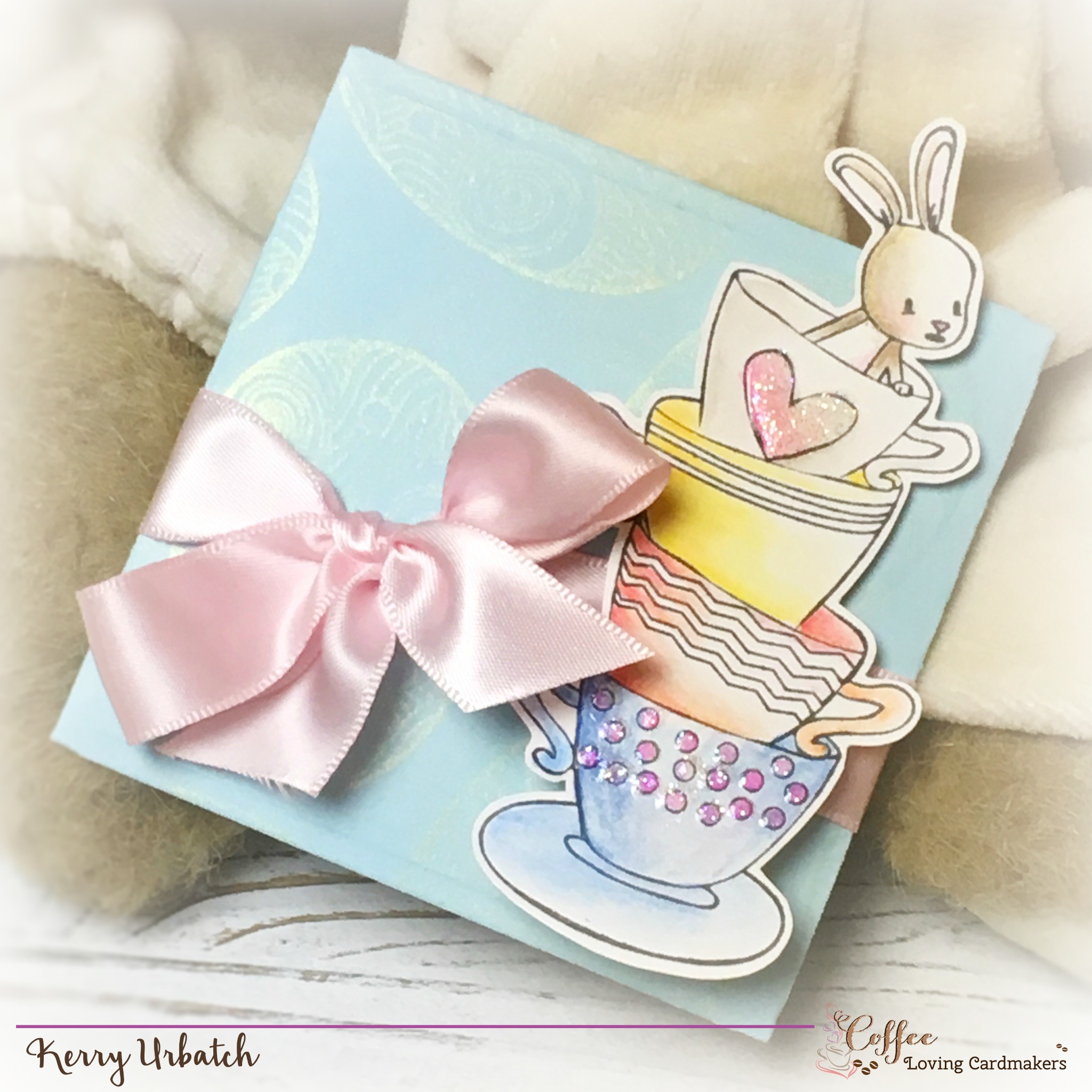 Hello there coffee loving friends. It’s Kerry here with another installment of Sunday Sip and Share. This week I thought I’d play around with a cute little bunny set that I just received. It’s the most adorable bunny set called Easter Wishes! I paired it up with a fun little Note-velope die that allowed me to make a little tea-bag holder gift. It’ll be a perfect little treat in an Easter basket. 🙂