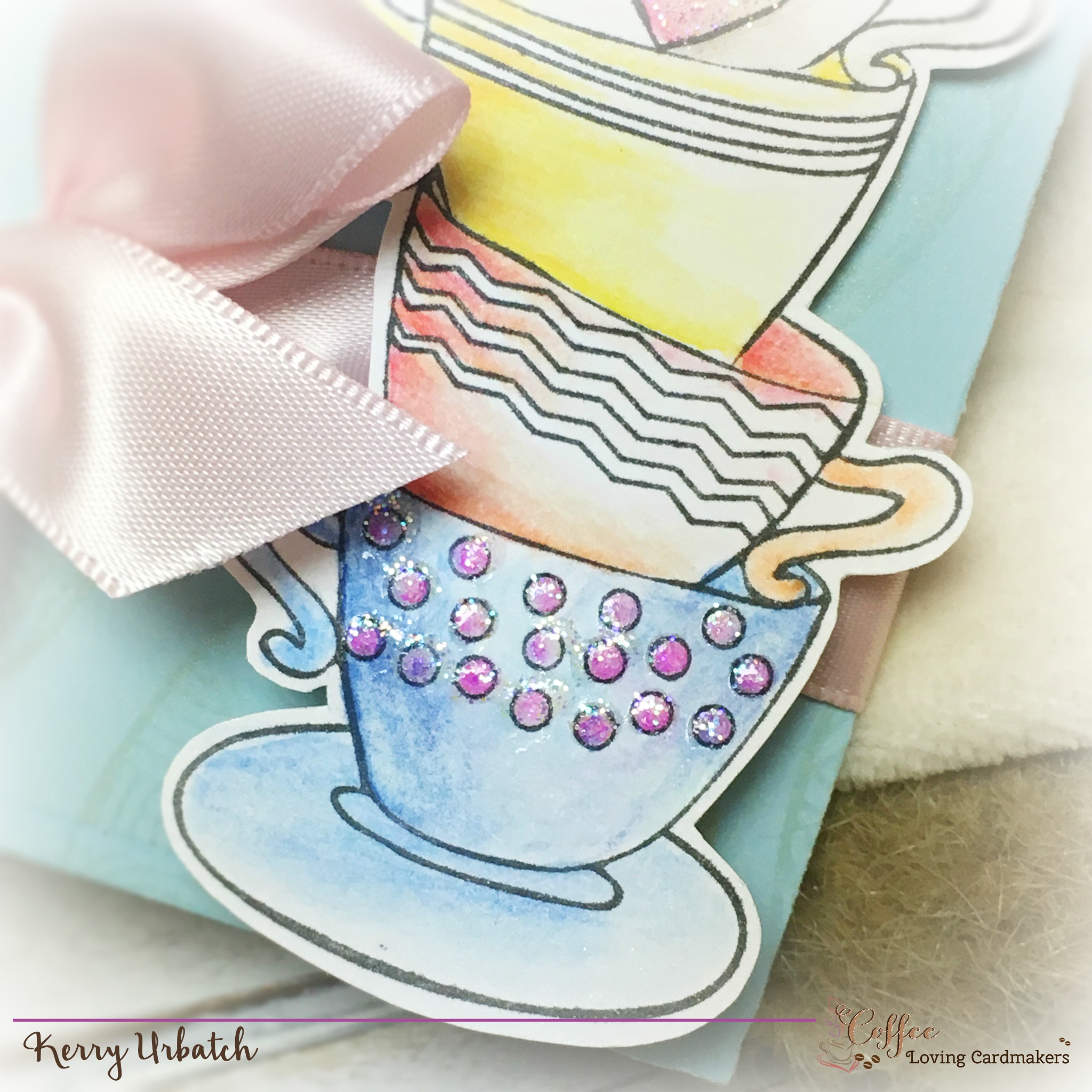 Isn’t he cute?!?! After coloring the little cups, I added some Journey Glaze and Sparkle Dust onto the heart and polka dots on the cups.
