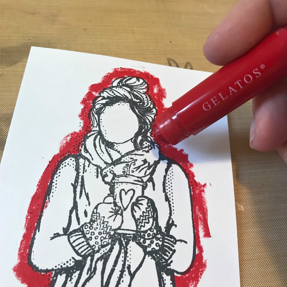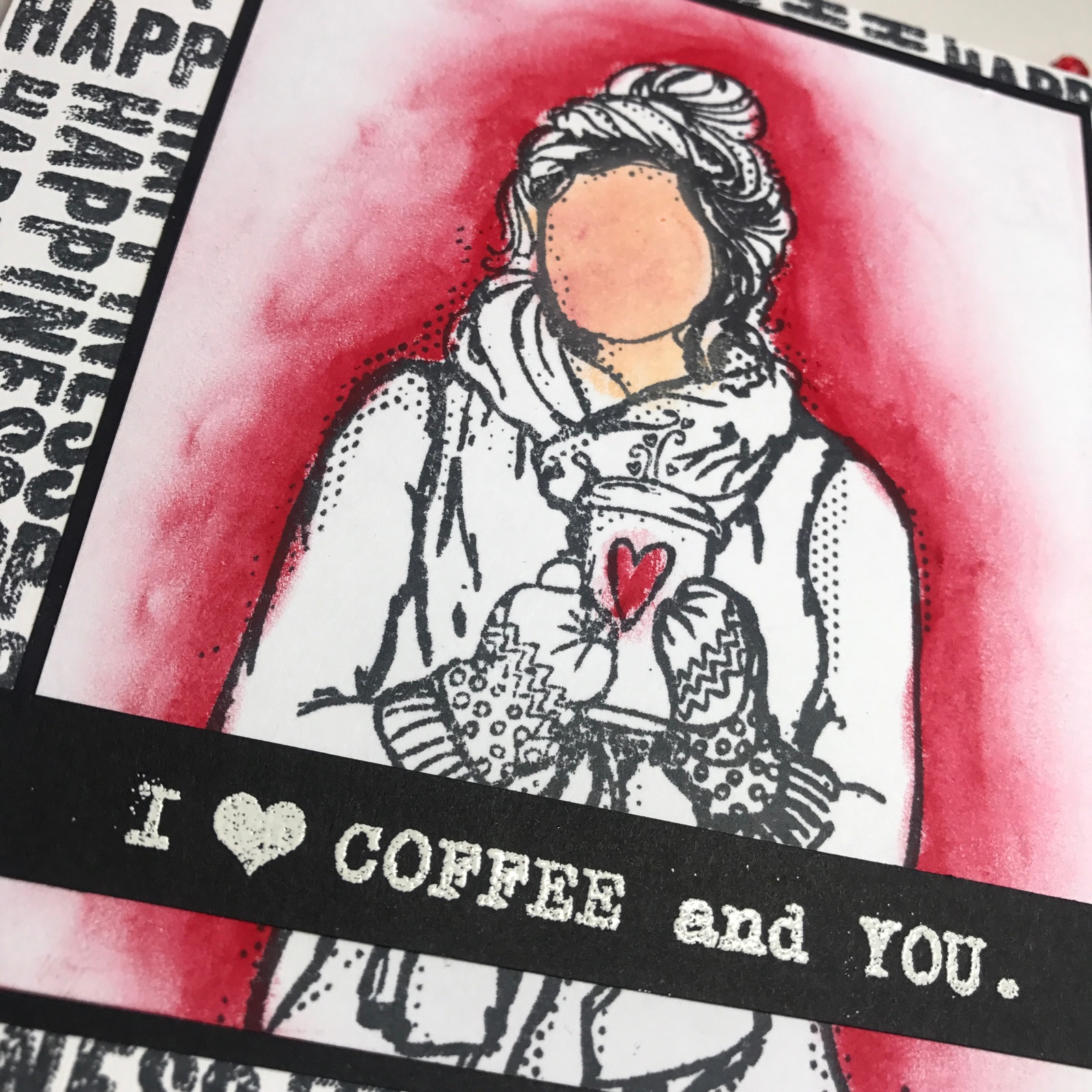I scribbled red Faber Castell Gelato stick around my image (and also added just a teensy bit to the heart in the coffee cup).