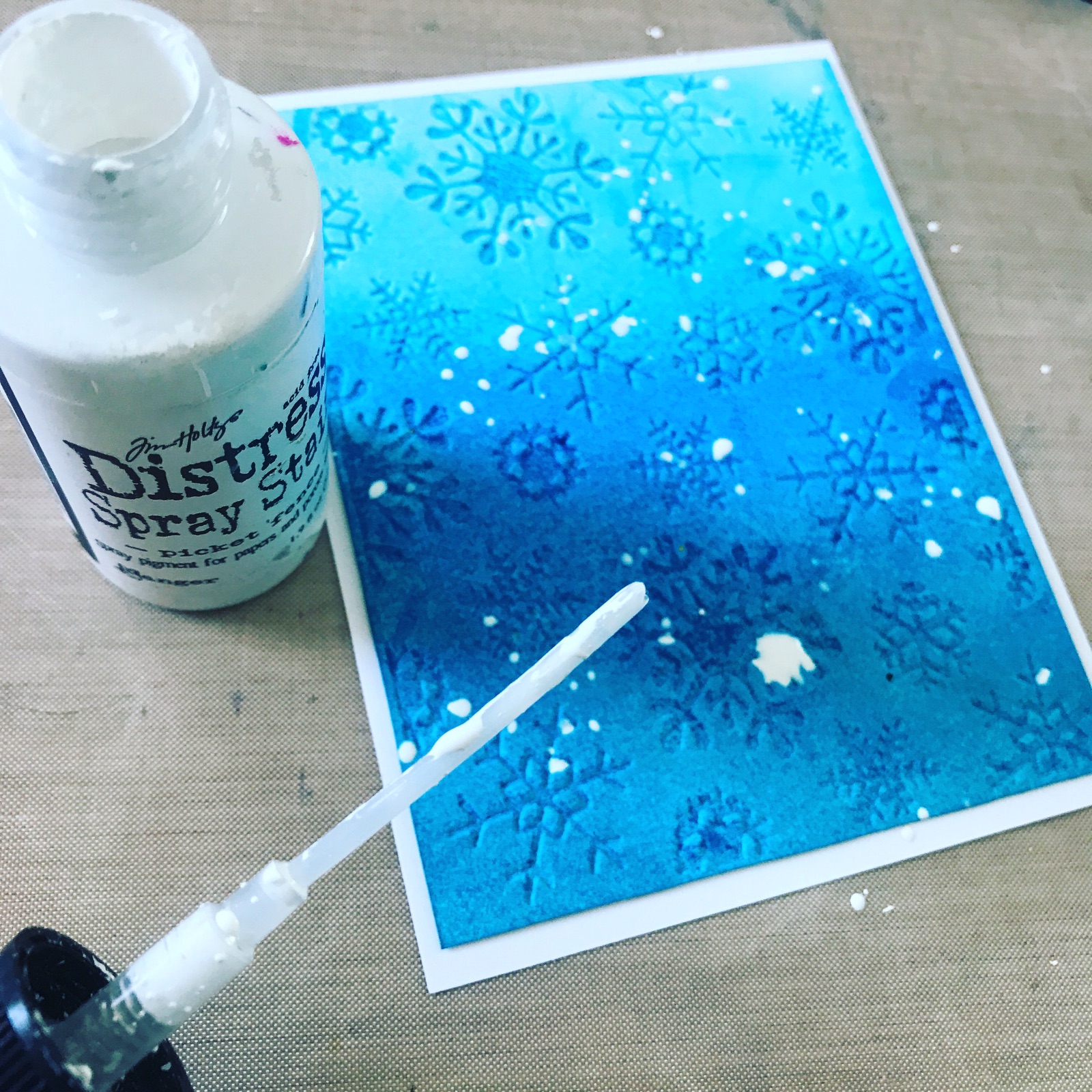 I made some white splatters using Distress Spray Stains, to add some additional visual interest to my background.