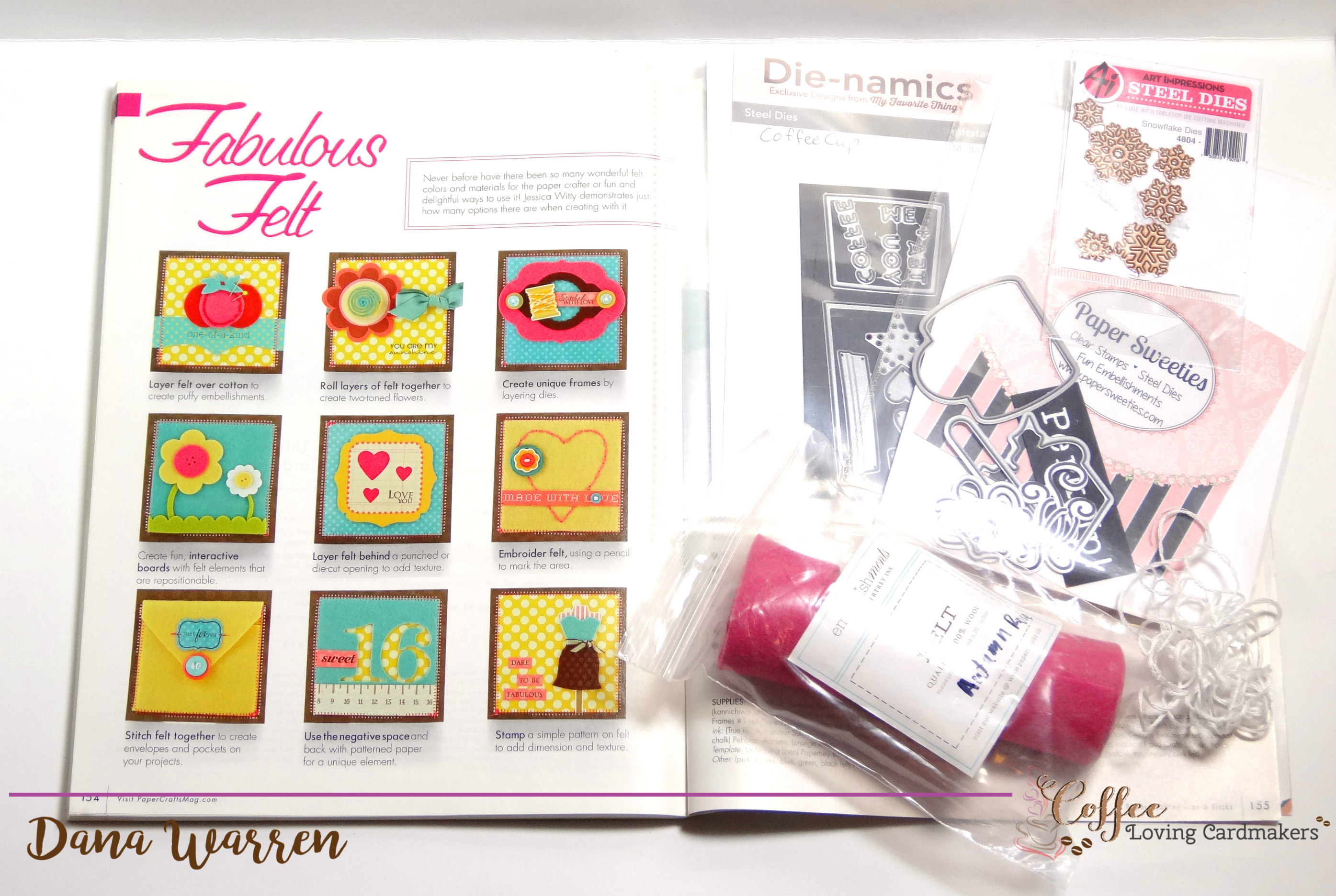 Hello!! Dana here with a new installment of Brew & Craft Your Stash!! How are your fall coffee/tea creations coming along for the Fall Hop??? Perfect time to be using both your stash of crafty supplies and your stash of coffee and or tea!! Today I have some great ideas for using Fabulous Felt!!! If this is the first time you are seeing my feature or need a refresher, click here for my very first post, it gives a little background explanation on my feature!!