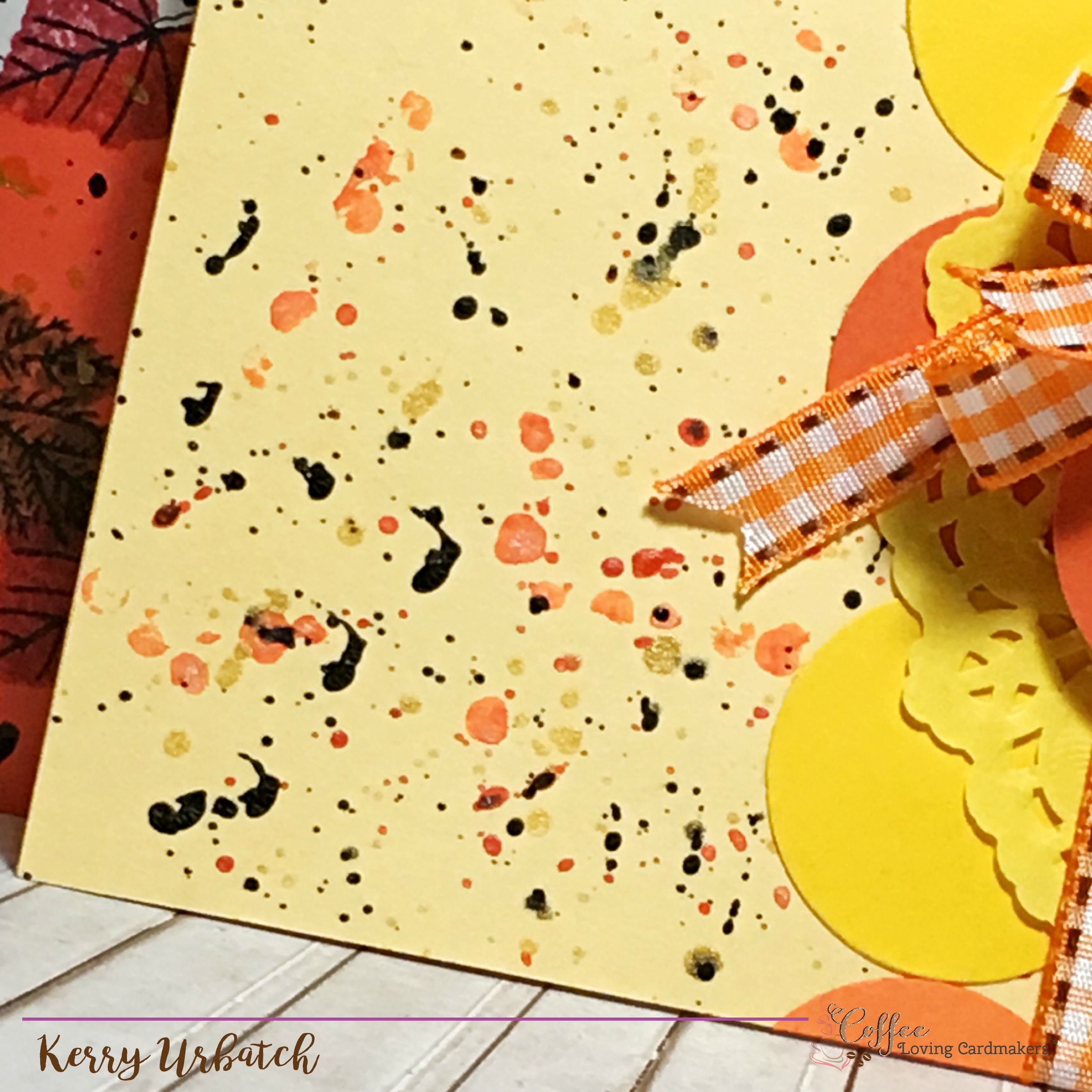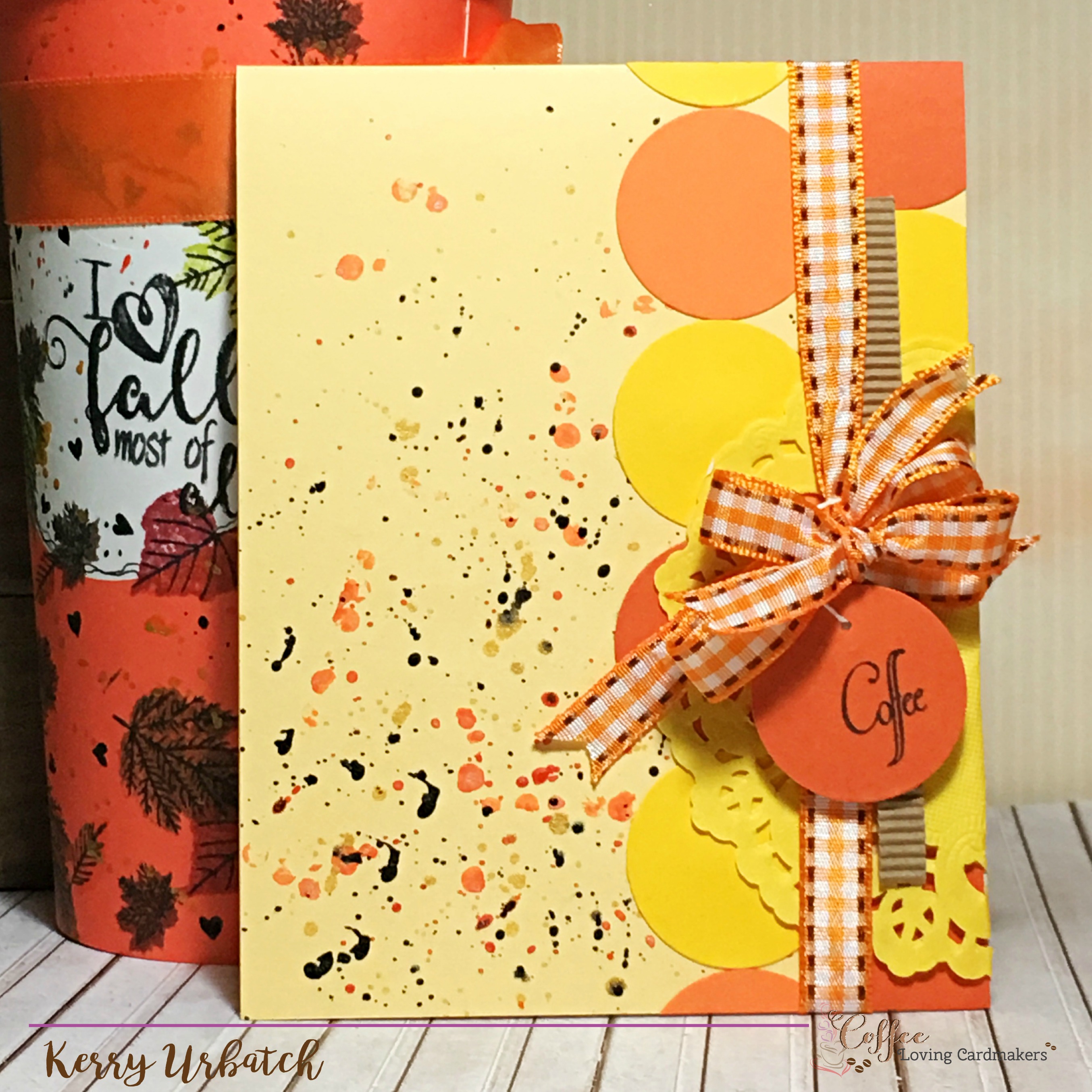 Hey there Coffee Loving Crafters! It’s Kerry here and I’m back with another Sunday Sip card. I created a fun little candy-corn inspired card using some delish fall colors and hope you like it. I punched a few candy-corn colored circles and offset them on the edge of a card base I had sitting on my shelf for days. It was calling me to use it but every time I tried, nothing seemed to pair nicely with it until this “circle” idea popped into my mind on the long commute home from work. It’s weird how my commutes are the most productive time for my muse. LOL.