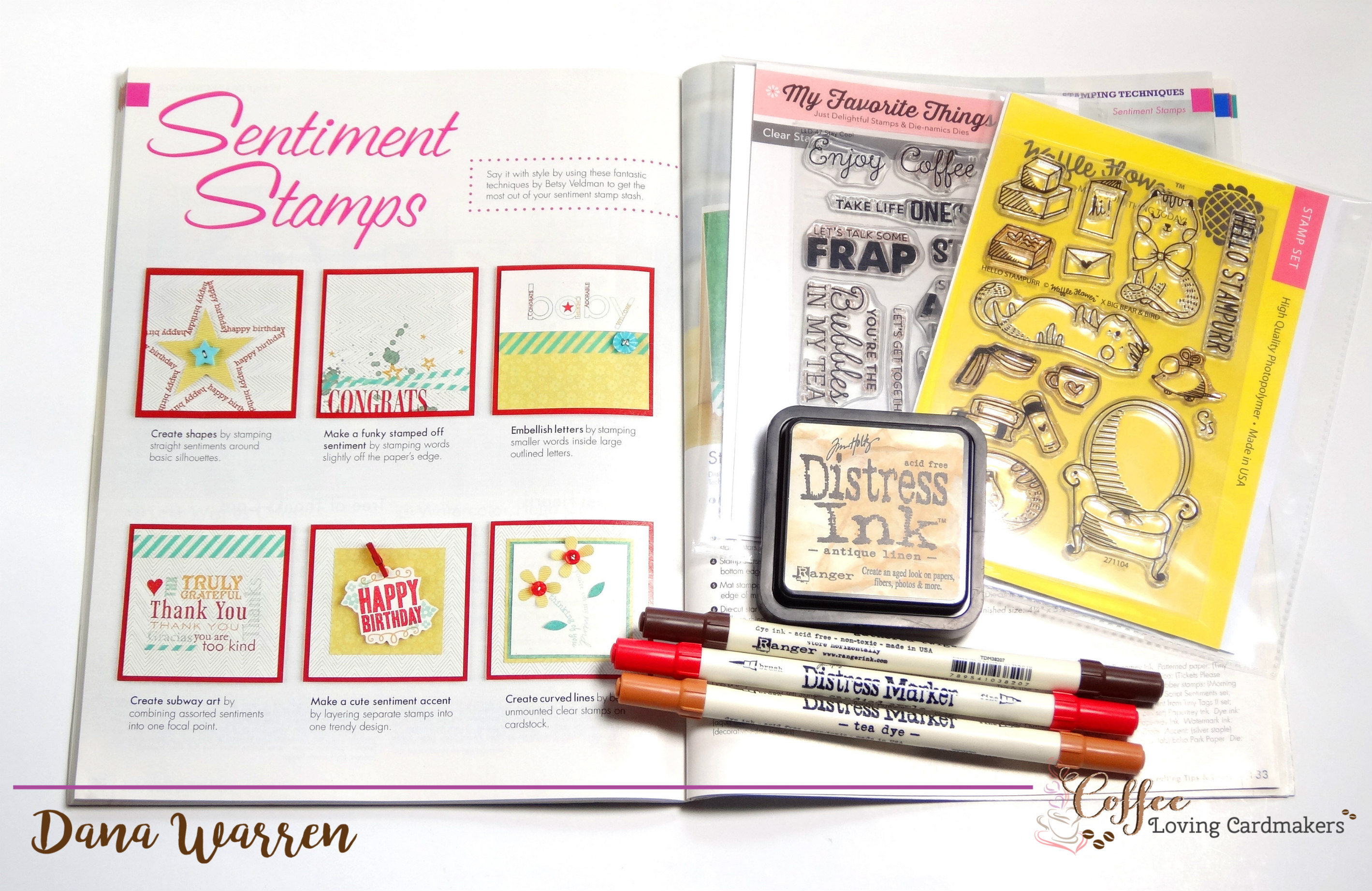 The next section in Paper Crafting Tips & Techniques magazine is Stamping Techniques and today we are looking at Sentiment Stamps! Betsy Veldman is up again with some awesome ideas for using sentiments!!