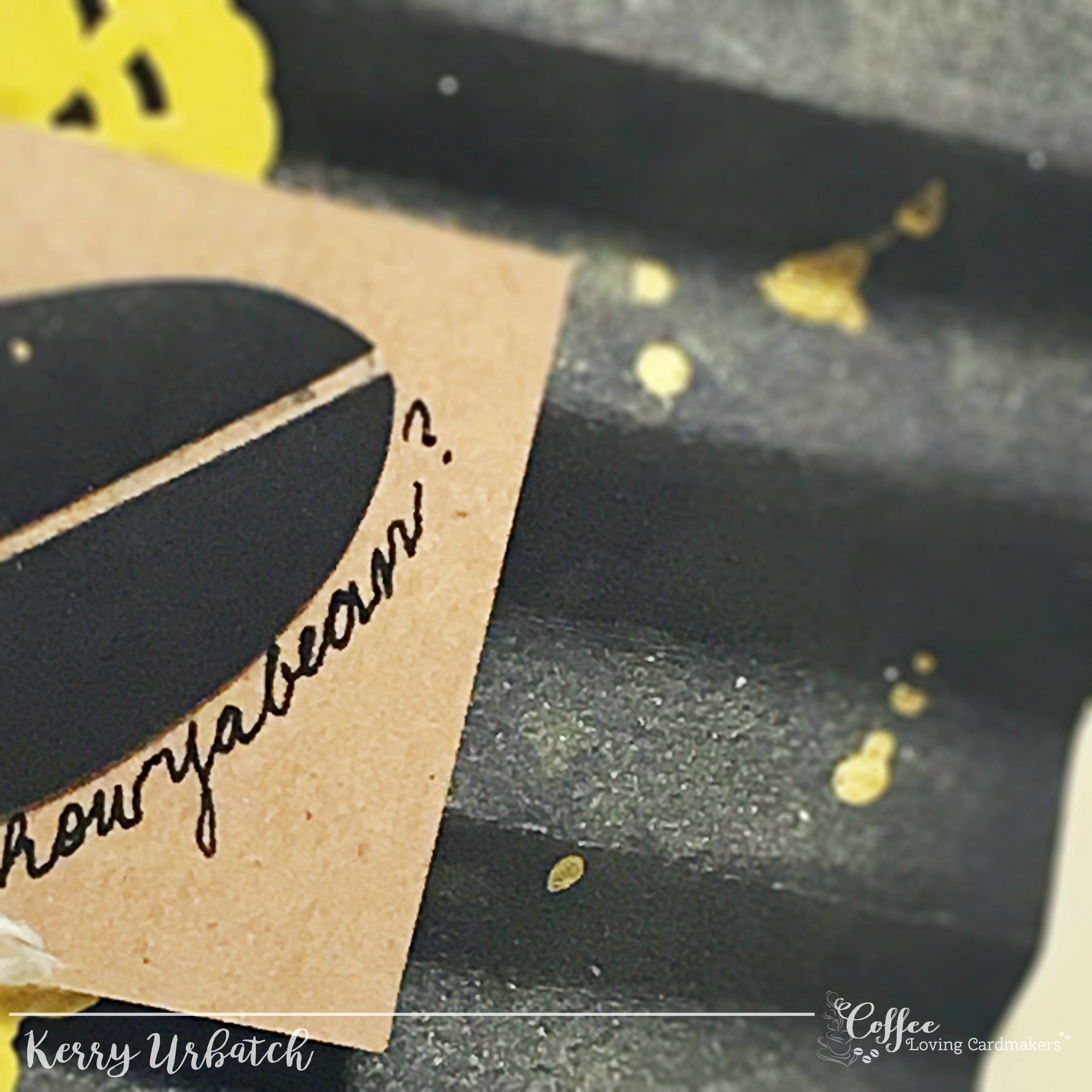 So to create this card, I cut out a coffee bean using some dark brown cardstock then added some Gold PanPastel for shimmer…because I was thinking, shimmer will make it all better, right?  Well, probably not but I kept plugging away.