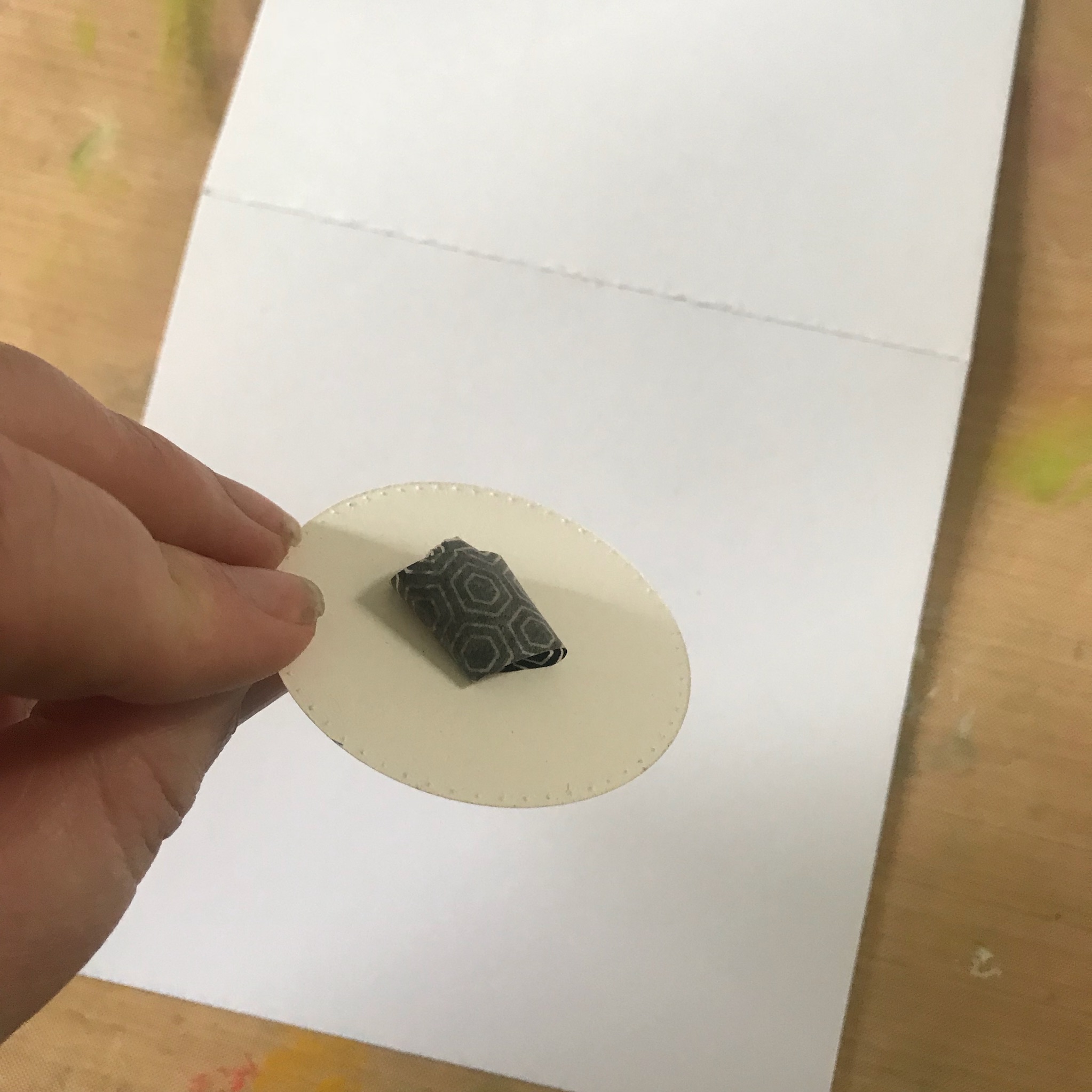 I started by masking off a circular area to use as a guide, using a die cut and some washi tape.