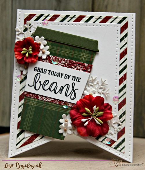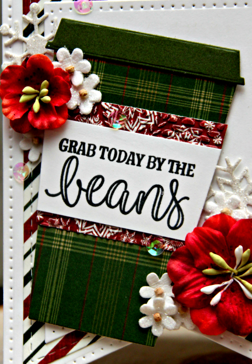Ok… now… the main idea of this challenge most months is to create a card of encouragement, something uplifting. For this month’s challenge, it’s ok to link up with a Christmas/Holiday card instead of the traditional encouragement card… I decided to do both! I chose my sentiment because to me it’s a fun way to say… get up and get out and enjoy life! And I was inspired by the beautiful traditional Christmassy colors in the inspiration photo AND it’s a drink. I mean… I was gonna do coffee either way, but so happy it worked out that way!