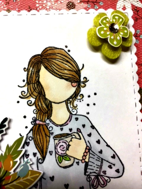 Hello everyone, and Happy New Year! It is so cold, even here in the South. So I wanted to “think Spring” 🙂 and use this cute stamp from Unity Stamp Company’s Planner girl line of smaller “girl” stamps, called Stay Cozy.