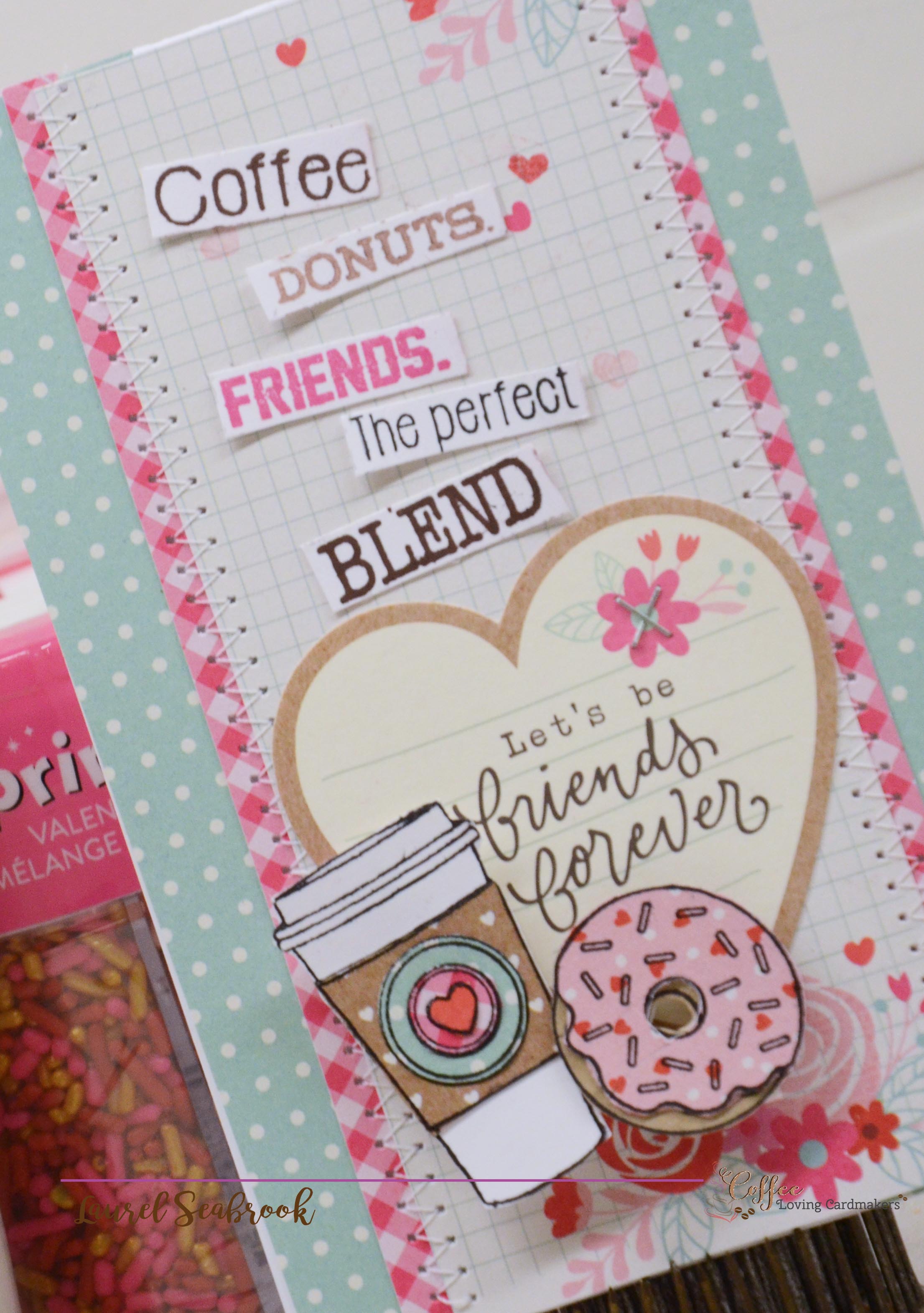 How are you inspired by the photo? the colors? theme? sketch? I pulled out all three of those ideas. I used the sketch and the colors and the Coffee Donuts Friends stamp set by Darcie’s worked perfectly donut you think? 😉