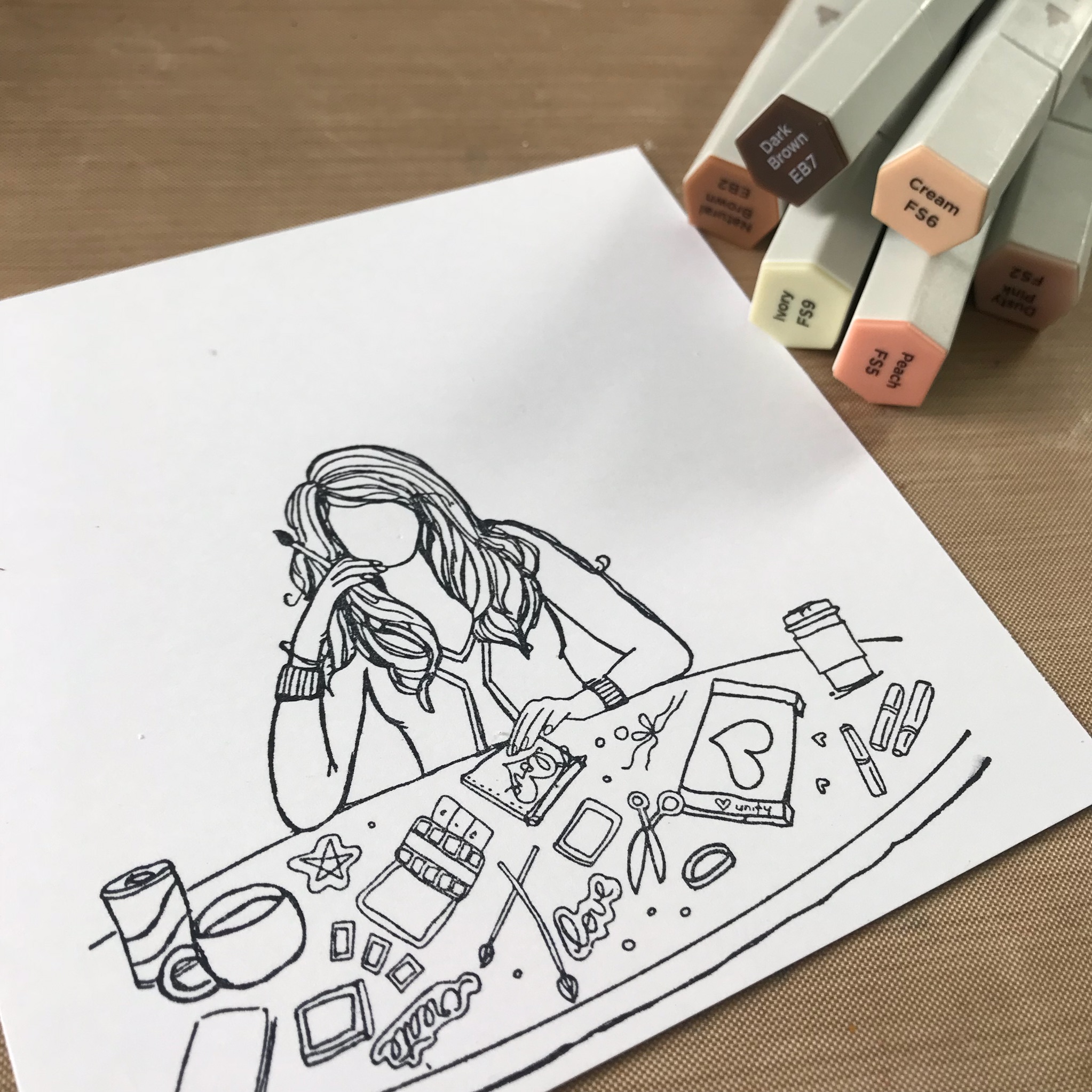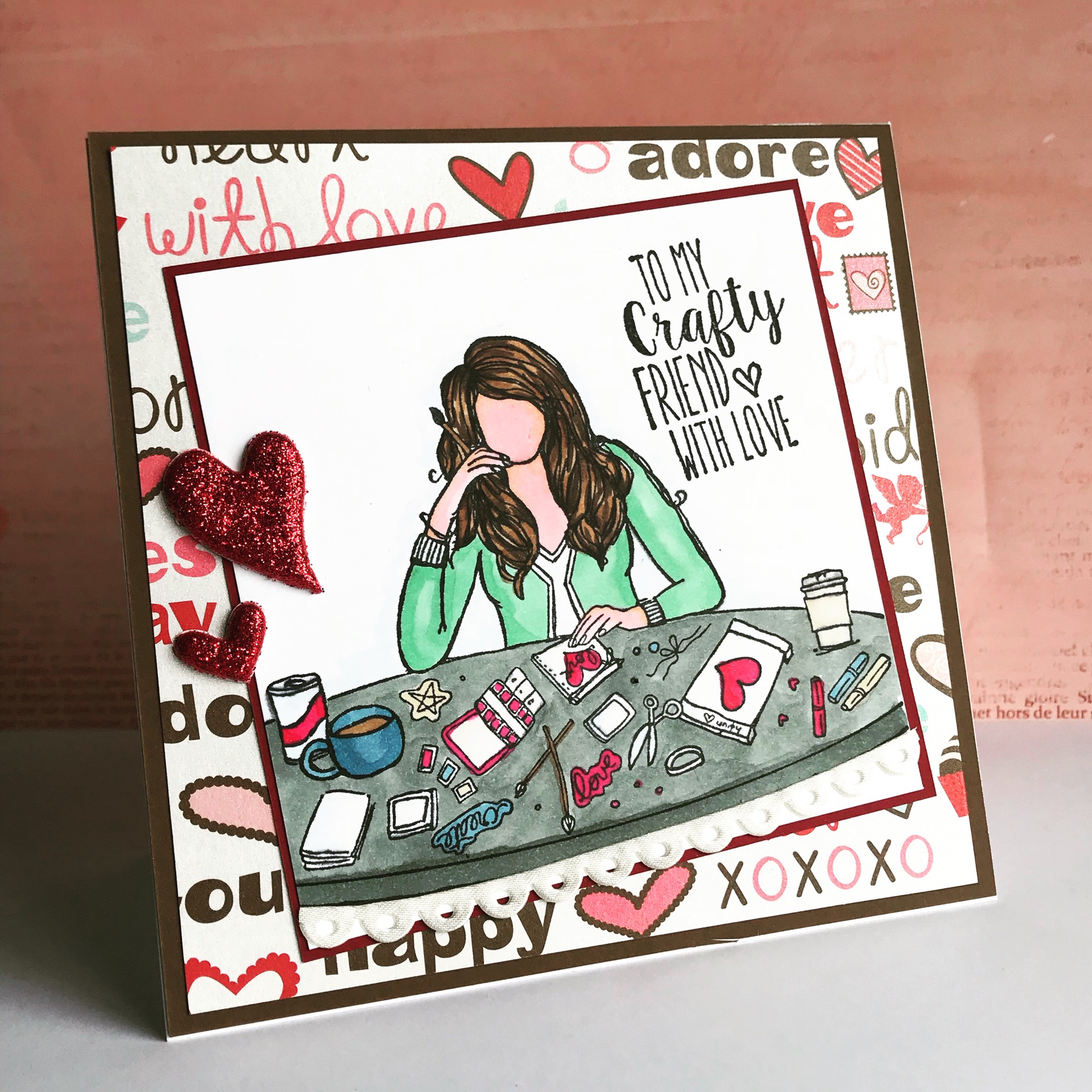 I absolutely love this stamp set, because Martha Girl’s craft desk looks EXACTLY like mine, down to the two different vessels for coffee. 🙂 Also, valentine’s cards hold such a special place in my heart because my grandma and I used to always get together for craft sessions – and her name was Martha. Sooooo pretty much this design was made for me.