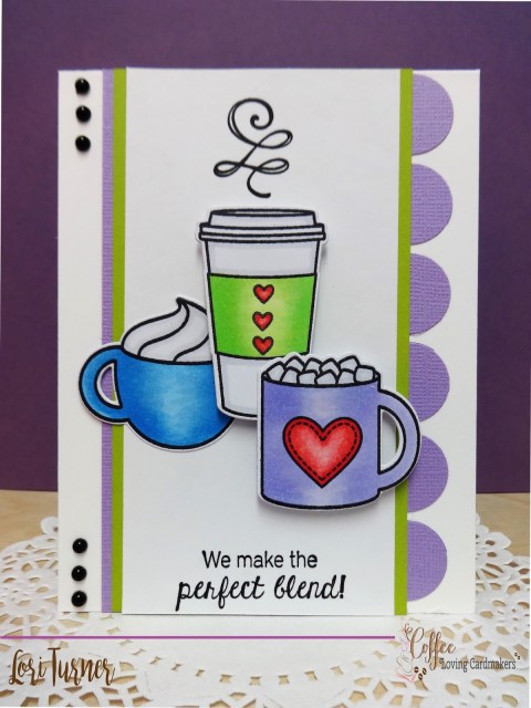 Hello everyone! Welcome back to our java-filled corner of the crafty blog world! Lori here, sharing this cute “perfect blend” trio card with you all today!