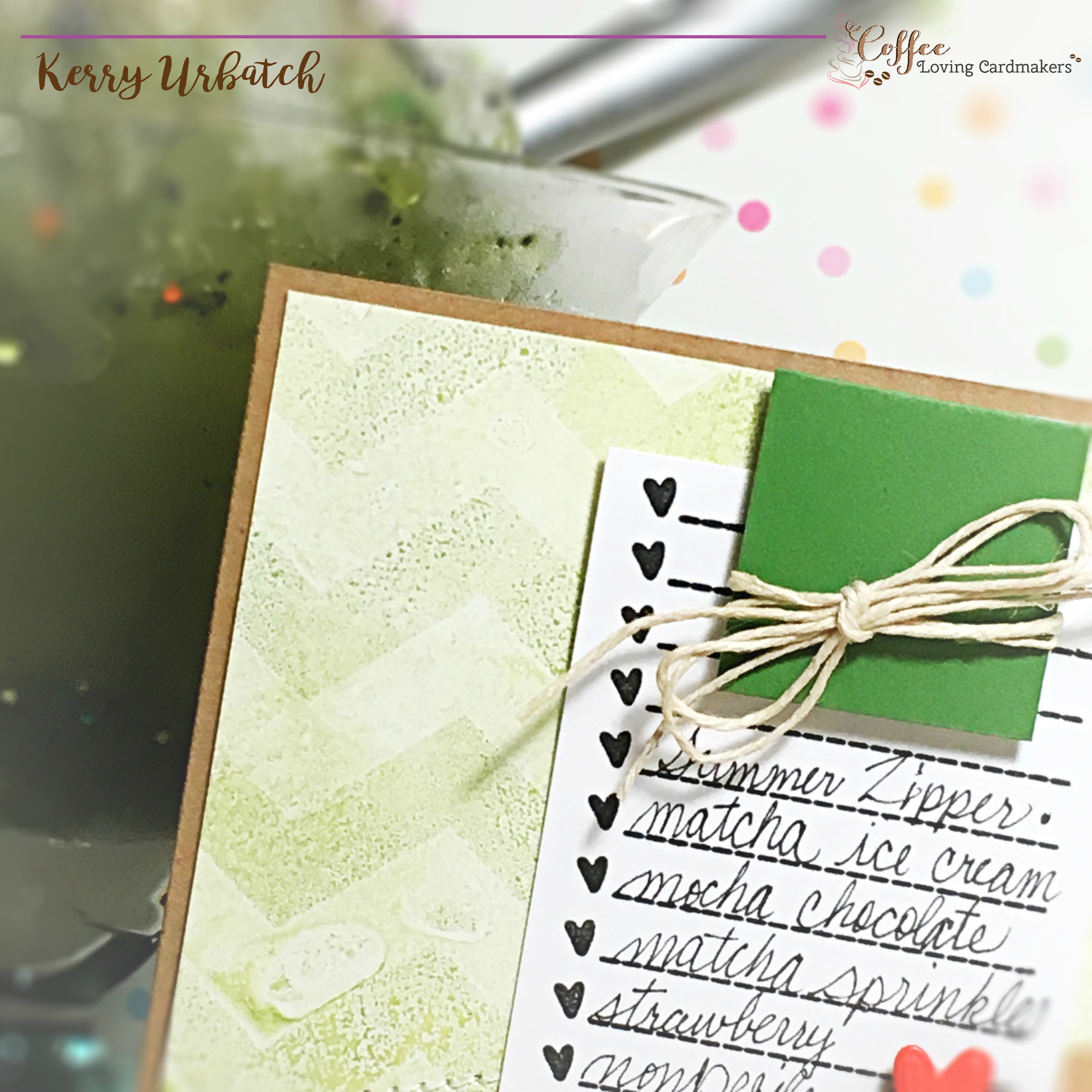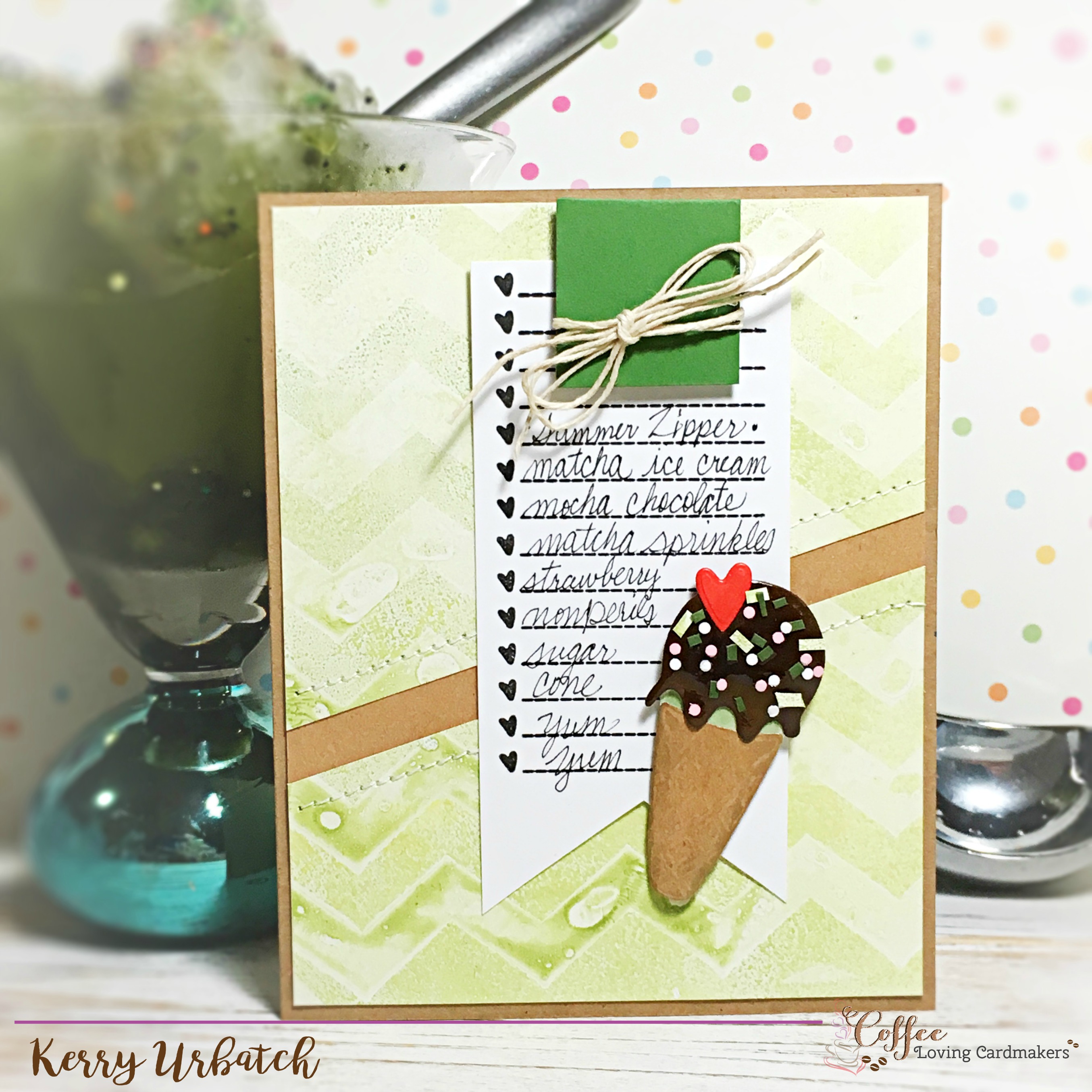Hey there coffee loving crafters! It’s Kerry here and I’m back with another Sunday Sip and Share! Today I’m sharing a tasty little card featuring some new goodies I picked up while visiting the Scrapbook Expo this weekend. I was lucky to hang out and work the Picket Fence Studio booth in Chantilly, VA and I had a lot of fun! I picked up some goodies from the booth too! This card features the Planner Girls Hang Out stamp set and a fun Nicole Petersen Designs ice cream/popsicle die set (not yet on her Picket Fence website) from . I made a mighty tasty ice cream cone- fresh and deeelish. Matcha goodness through and through!