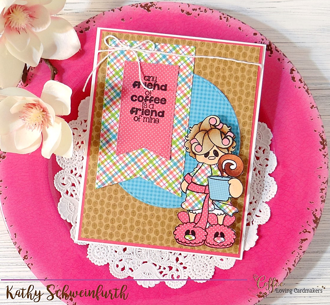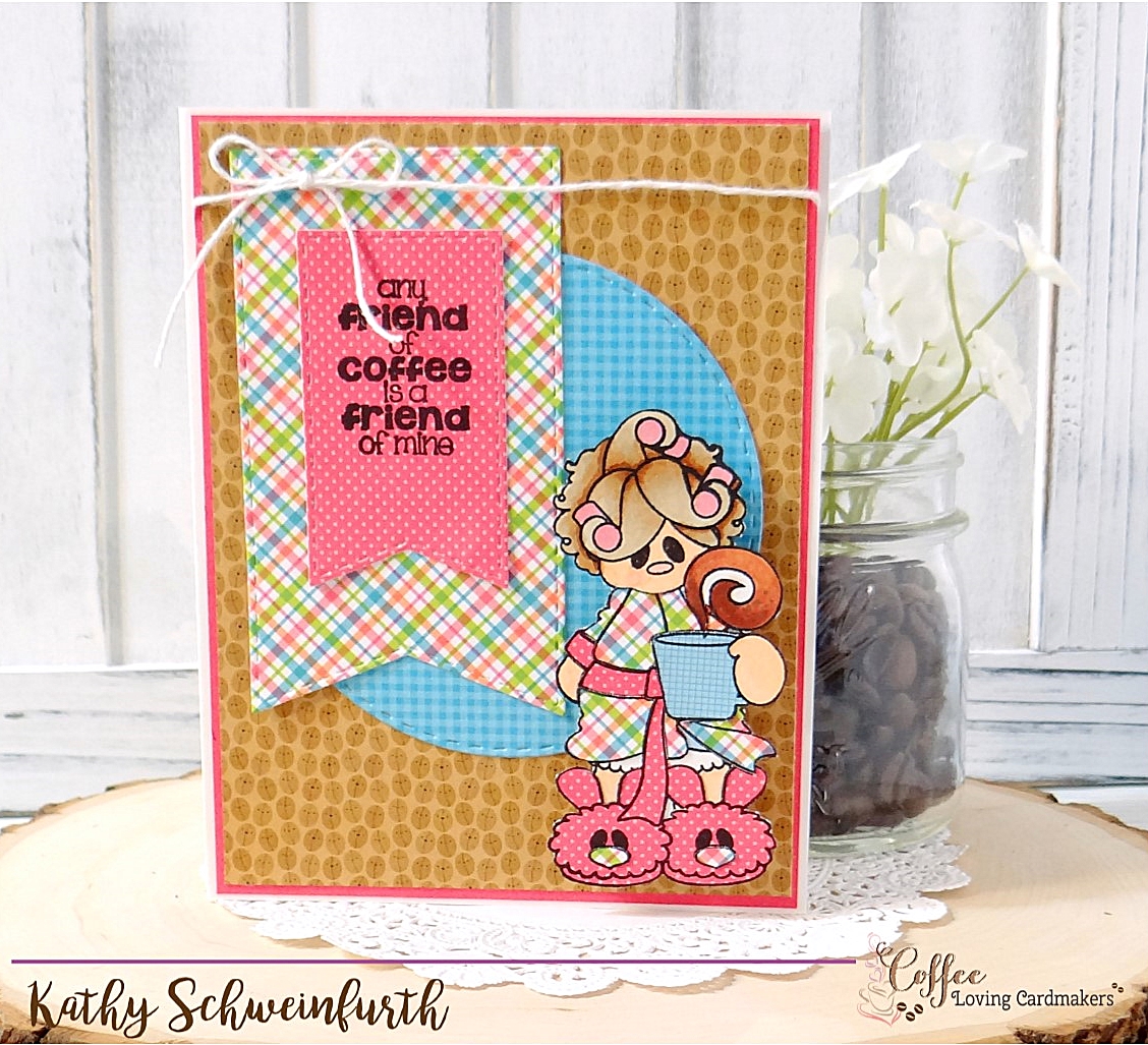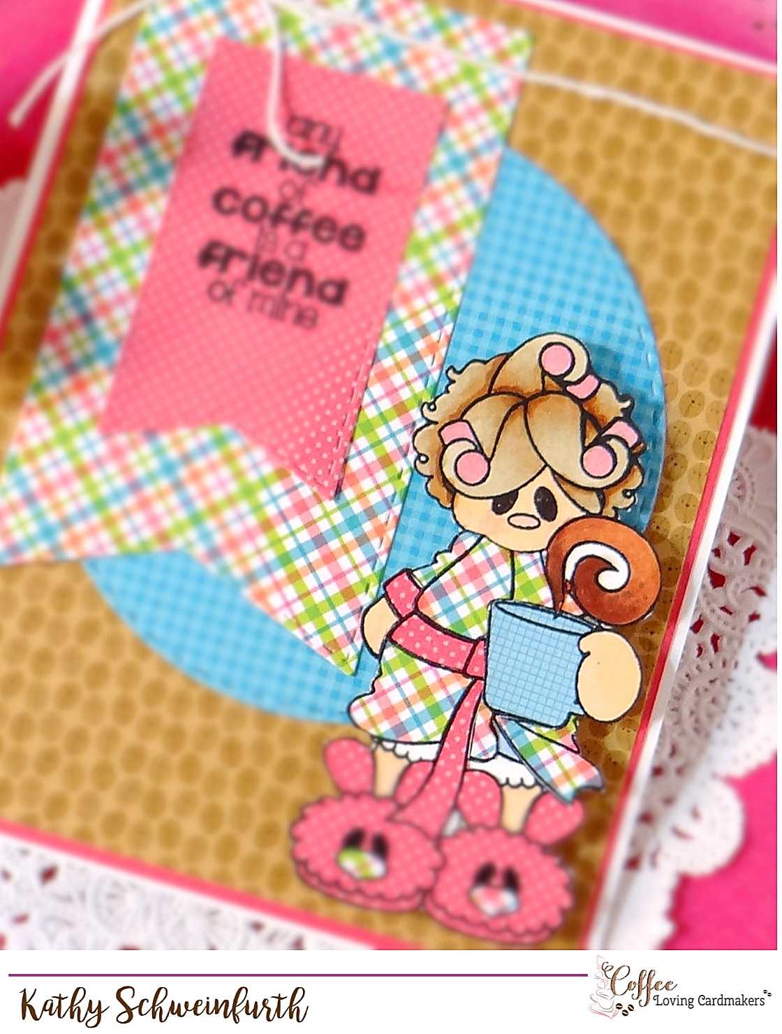 Today, my card features an adorable image and sentiment from Pink & Main called Need Coffee (isn’t that the truth?!) I had fun paper piecing her robe, bunny slippers and coffee cup with pattern paper from Doodlebug Cream & Sugar 6×6 paper pad.
