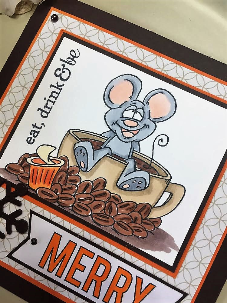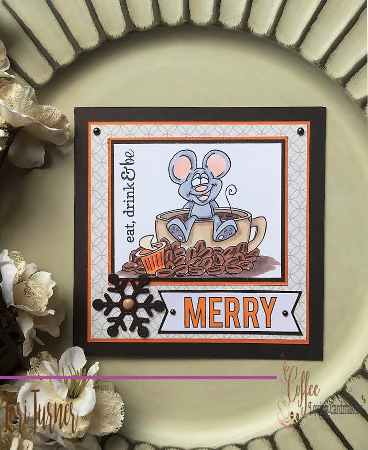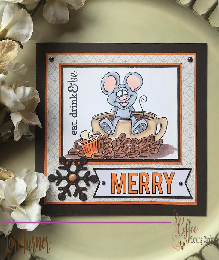 I added a snowflake and some pearls and called it good! I think I love the non-traditional colors of this card and that I could mix a coffee image with some Christmas sentiments!
