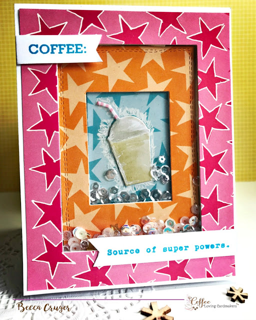 I am sad to see Becca go, we were just getting our CLC groove on together! But, I also know she isn’t going far and I will be keeping my eye on her blog. Thank you Becca for all your inspiration! I love this card by you, the stars, the bright, the fine details of the cup and straw, it just speaks to me! If I owned this card, I would gander at it daily for inspiration and to remind me to find my own super powers!
