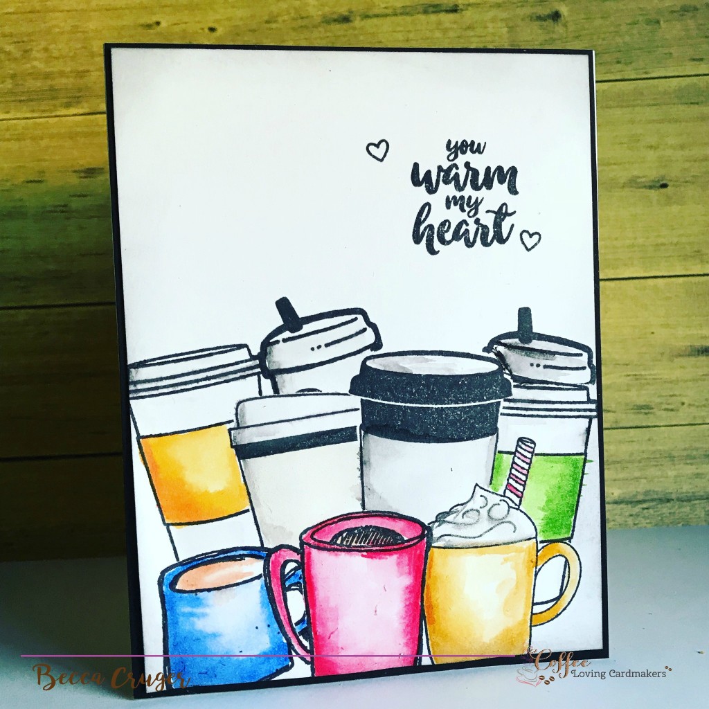 What is not to love about his card? The masking, the colors… Becca is such a talented designer and we’re going to miss her! She’ll always be a part of the Coffee Loving Cardmaker’s family as she moves to our Brew Crew. Thank you Becca for all your inspiration, I know where to find you and look forward to what you have in store for us!