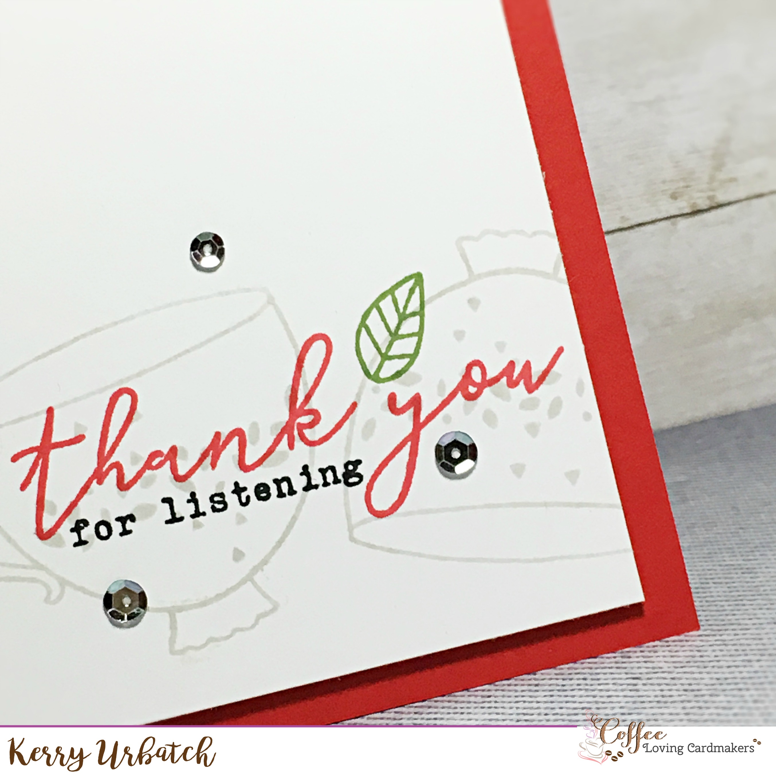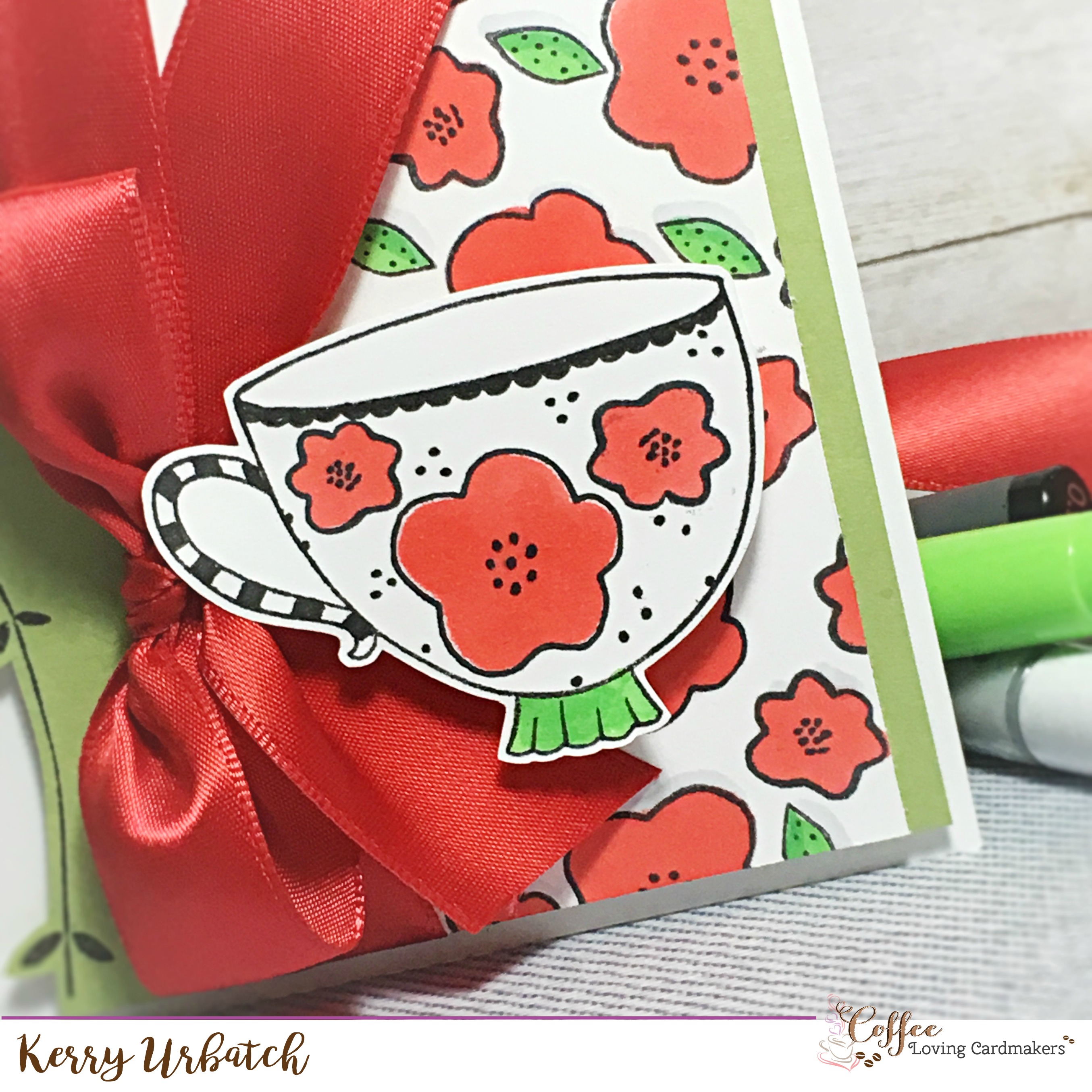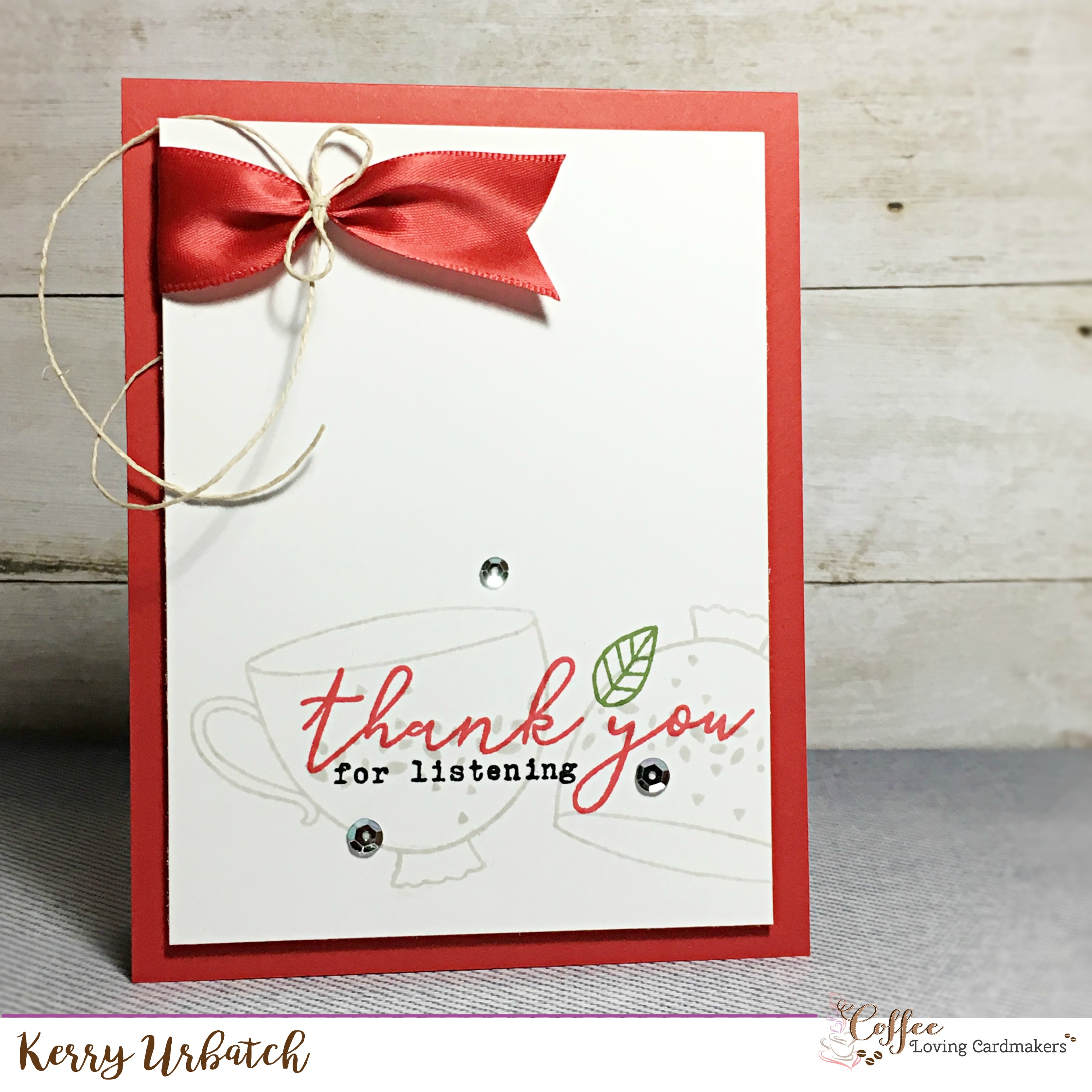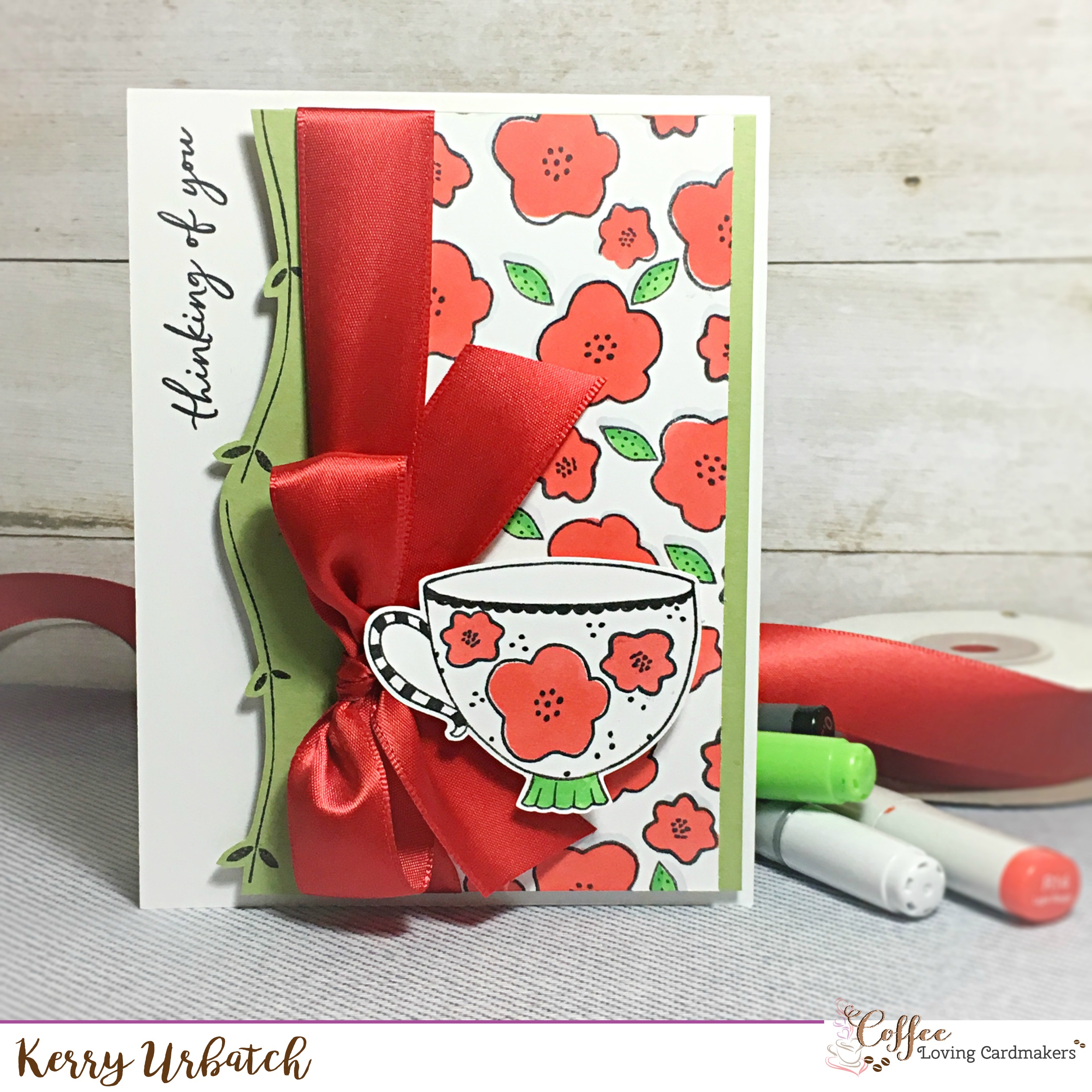 Hey there coffee/tea/cocoa loving crafters!  It’s Kerry here and I’m back with another Sunday Sip!  This week I was on a RED kick.  Have you ever experienced a “Color Kick” before?  Well, mine usually lasts about a couple weeks and it’s difficult for my brain to grab colors outside of the “Kick zone”.  SOOO…Here ya go.  Two cards on the RED team.  RAH RAH!