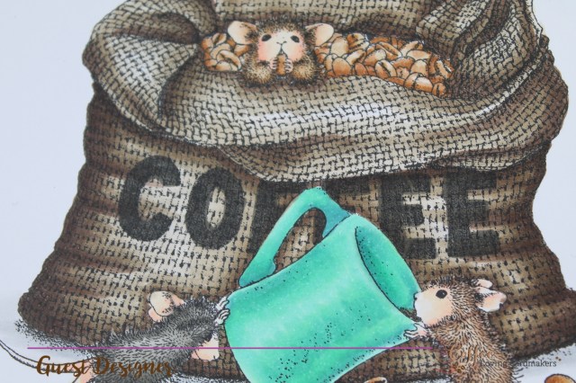 Once I was finished colouring, I went hunting for a small, coffee-related sentiment and found the perfect one in the (retired?) Oh Frappe! set by Essentials by Ellen.