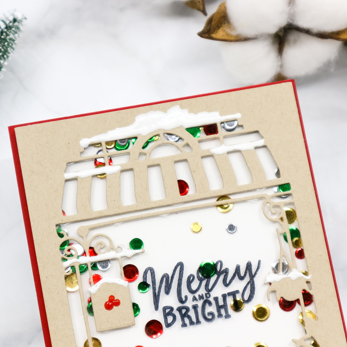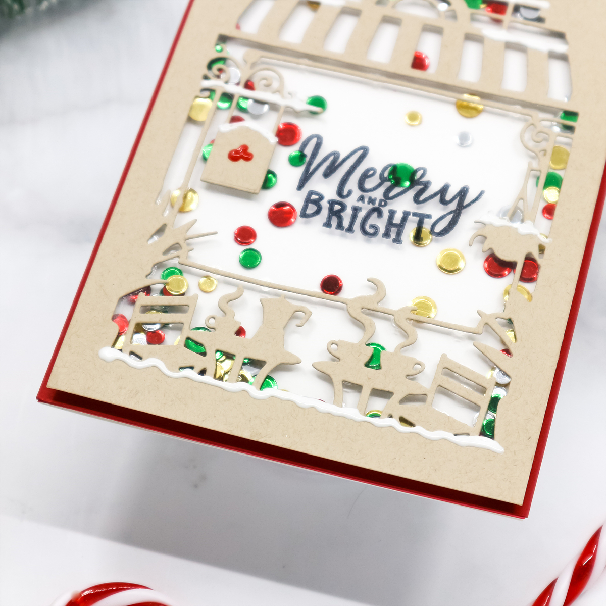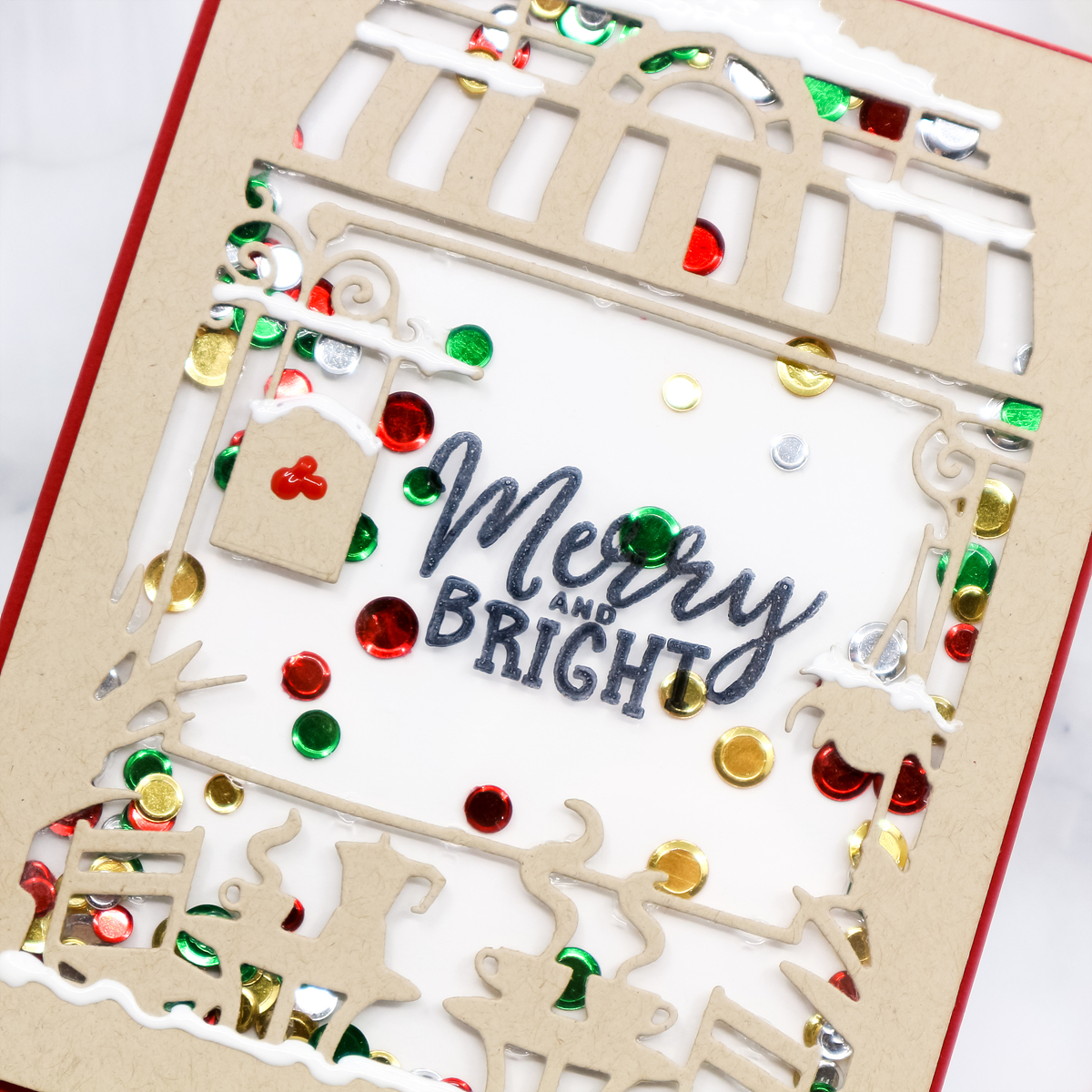 I then mounted foam tape to shaker window and finished off the shaker with Studio Katia Christmas Confetti.