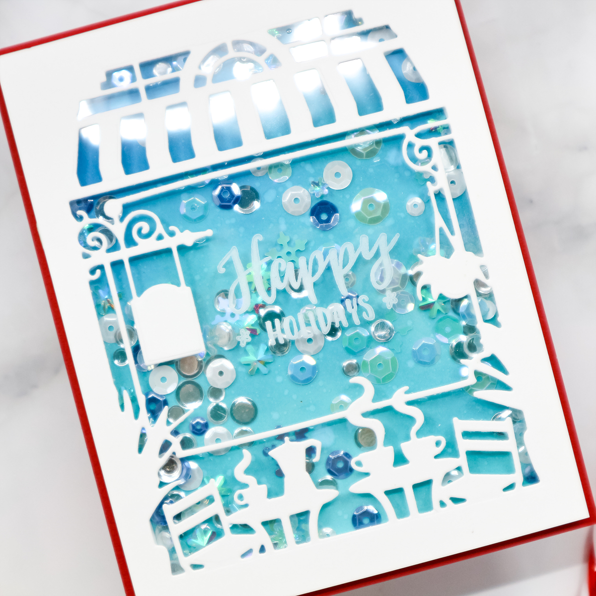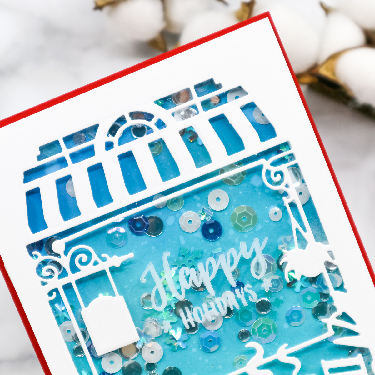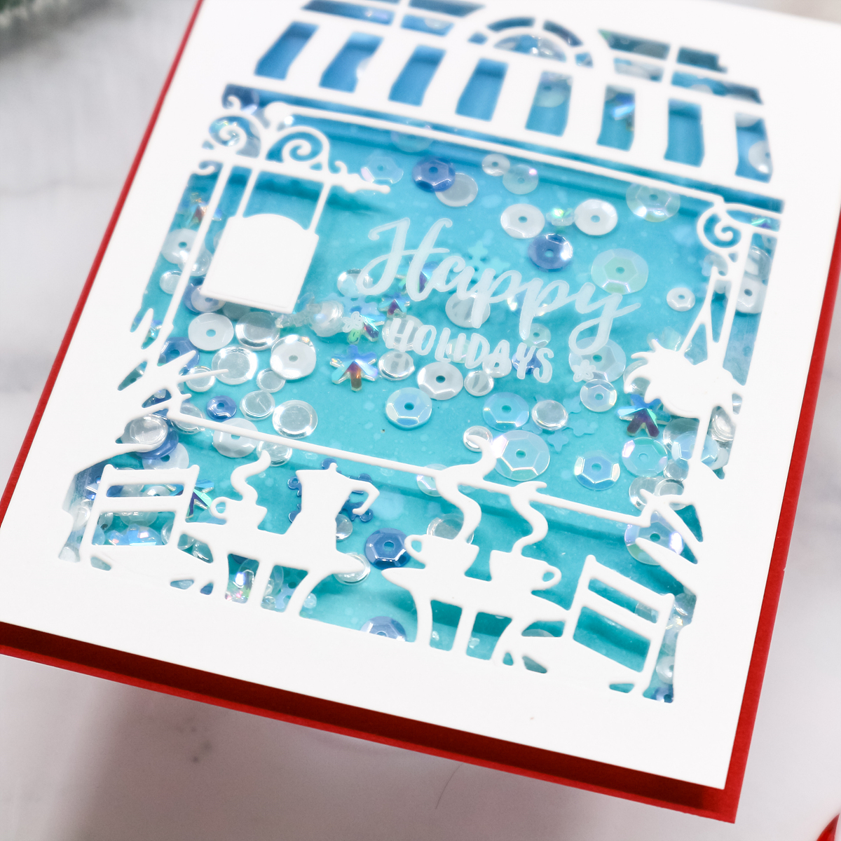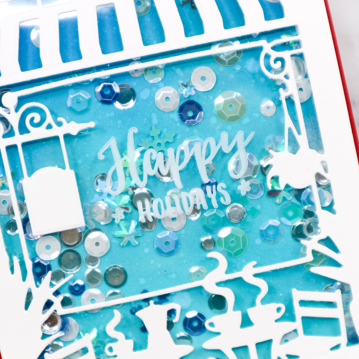 I then mounted foam tape to shaker window and finished off the shaker with Studio Katia Christmas Confetti.