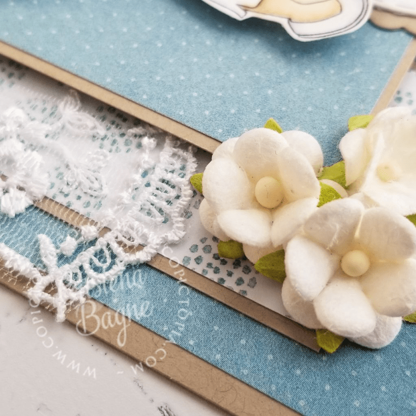 The last thing I used to finish off this super cute coffee card was some lace that I got from Hobby Lobby and some Deep Ivory Sweetheart Blossom flowers that I have from Wild Orchard.