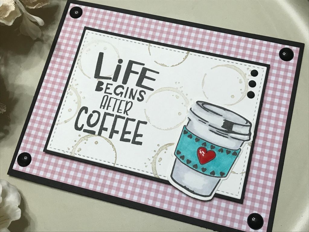 By now, I am assuming everyone is back into their routines after the Christmas/New Year holidays and life has resumed to it’s normal state! I had the opportunity to have almost 2 weeks off during the holidays, which was very nice as I ended up being sick with a nasty head cold – ugh! I did, however, spend a lot of time in my craft room, creating cards and getting ahead on my DT commitments – YAY me!! Here’s my first coffee card of 2019: