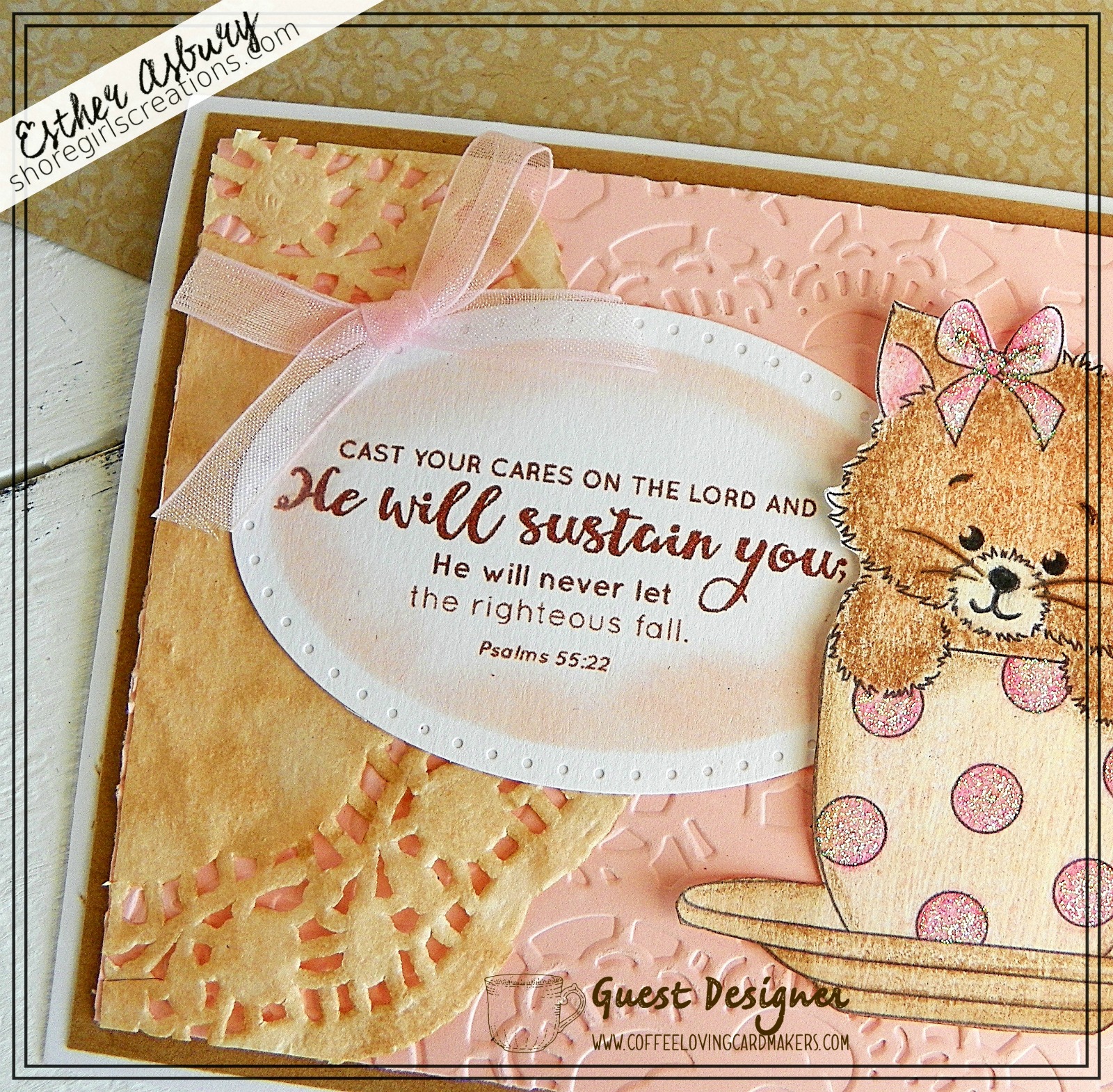 Awww, so precious and sweet. Beautifully designed; love the vintage feel the coffee doily & colors give this. And a beautiful sentiment!