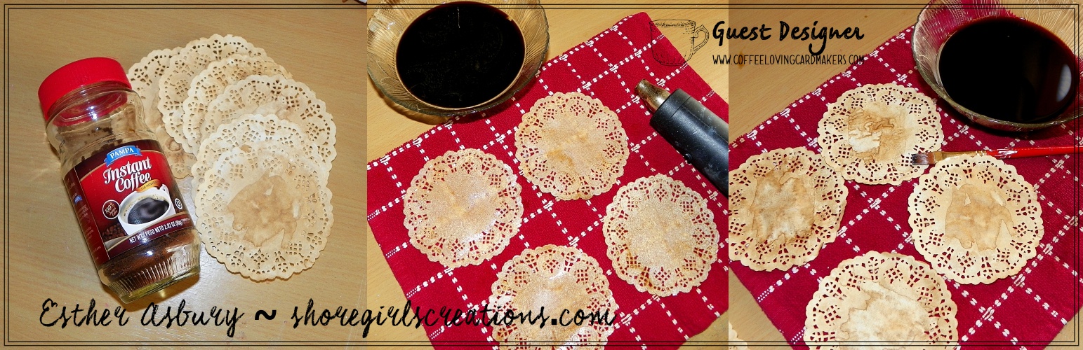 5. Using a small paintbrush, splatter some coffee over your dry doilies for added effect