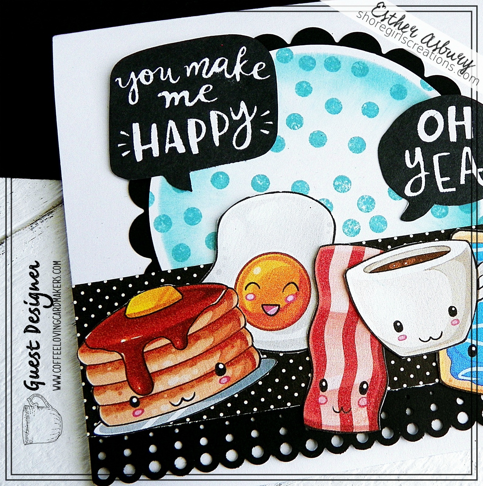 For this first card I used a digital clip art set called Kawaii Breakfast. Here’s how I put this card together…..