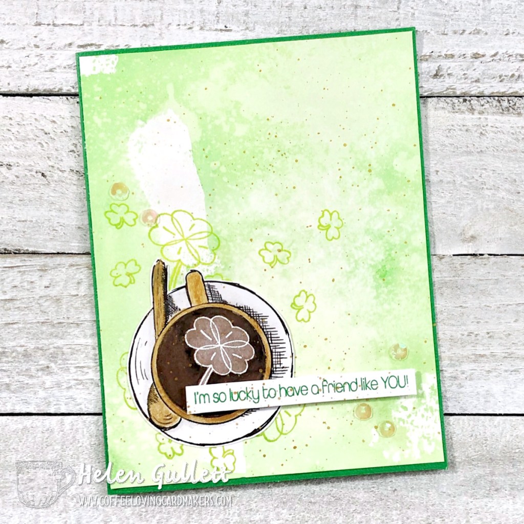 Hello hello hello everyone… Helen is here. February is almost gone and March is coming. I am so ready for Spring… Today, my dear coffee loving friends, we are taking a Thursday Break with this St. Patrick’s inspired coffee card.