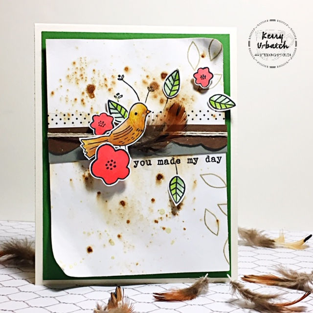 After I was satisfied with my background, I selected the perfect Pinkfresh stamp set called Bird With Flowers to give my card a happy little personality!