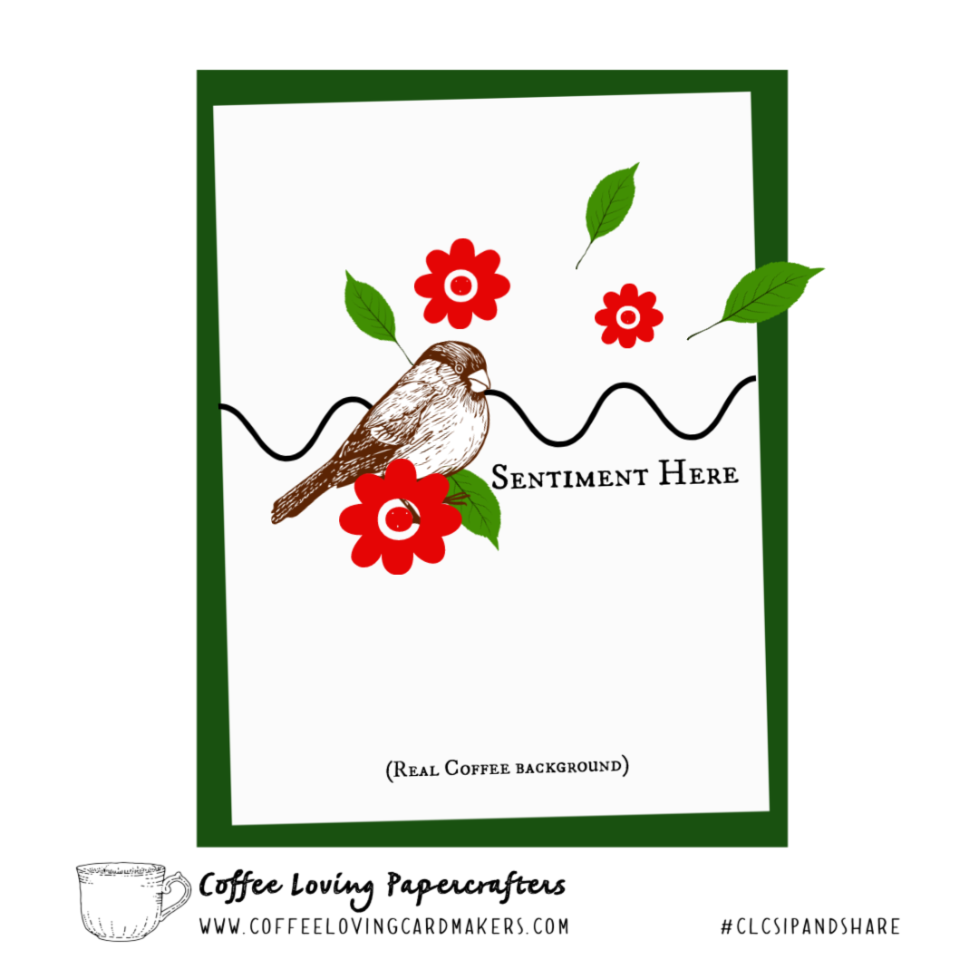 Hello there coffee loving papercrafters! It’s Kerry here and I’m back with another fun Sunday Sip! Today, I’m sharing a card I was thinking about all the while I was driving back from a visit at the American Craft Council in Baltimore on Saturday. My mission was to add another beautiful mug to my pottery collection and I did just that! All the while I was driving back home (an hour and a half drive), I was thinking about coffee… Yep, I was thinking about coffee, even smelling it in my mind! Have you ever had such an experience? Well, I did and then I started thinking about how I could use some instant coffee to make a yummy background…So I started making the card in my mind, while driving, in the rain. HA HA!