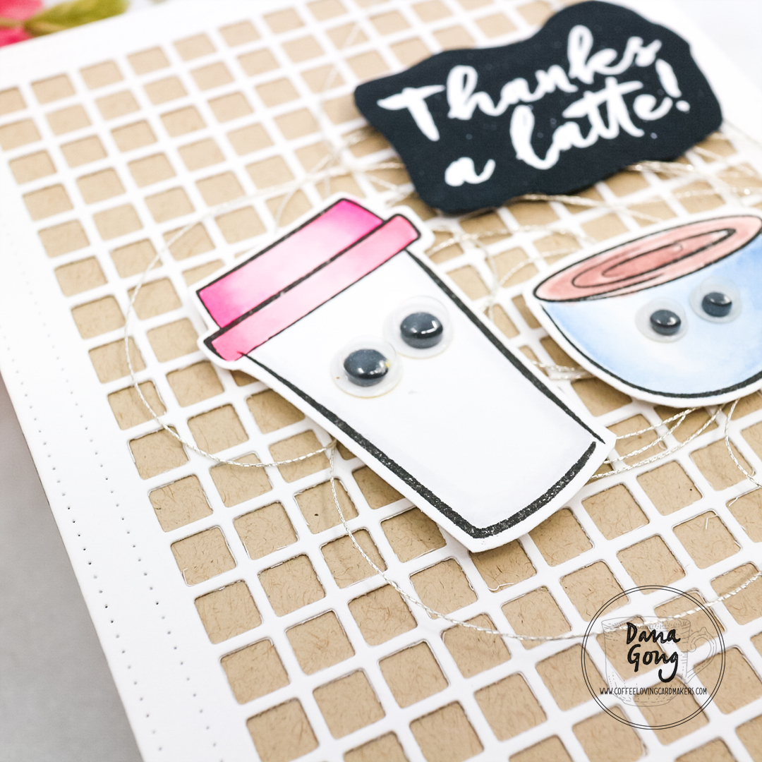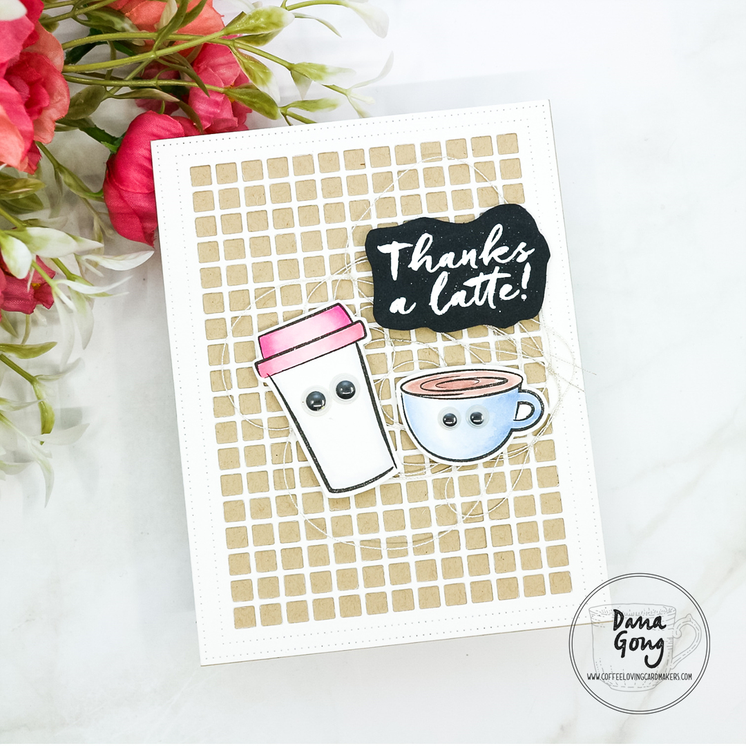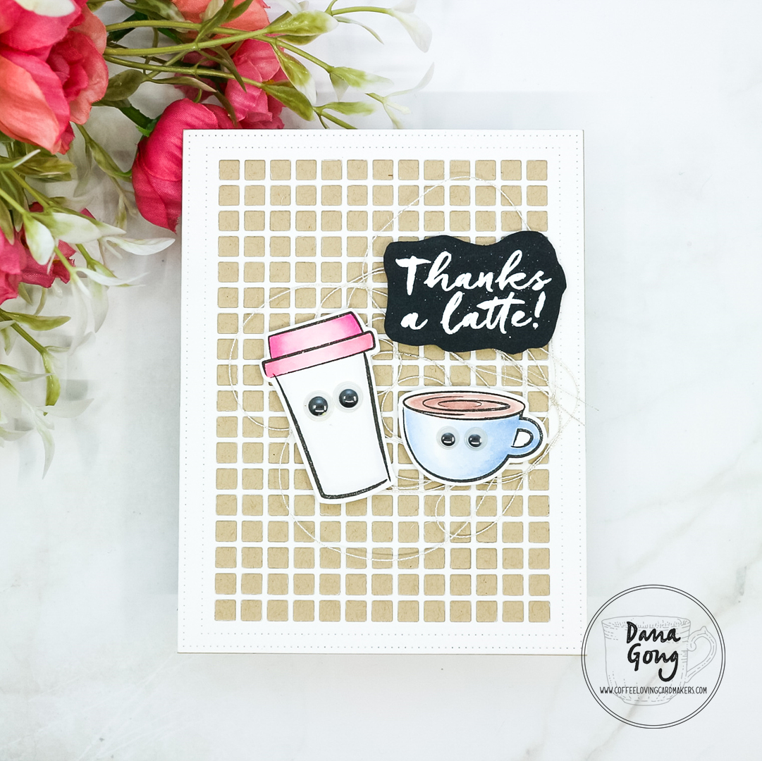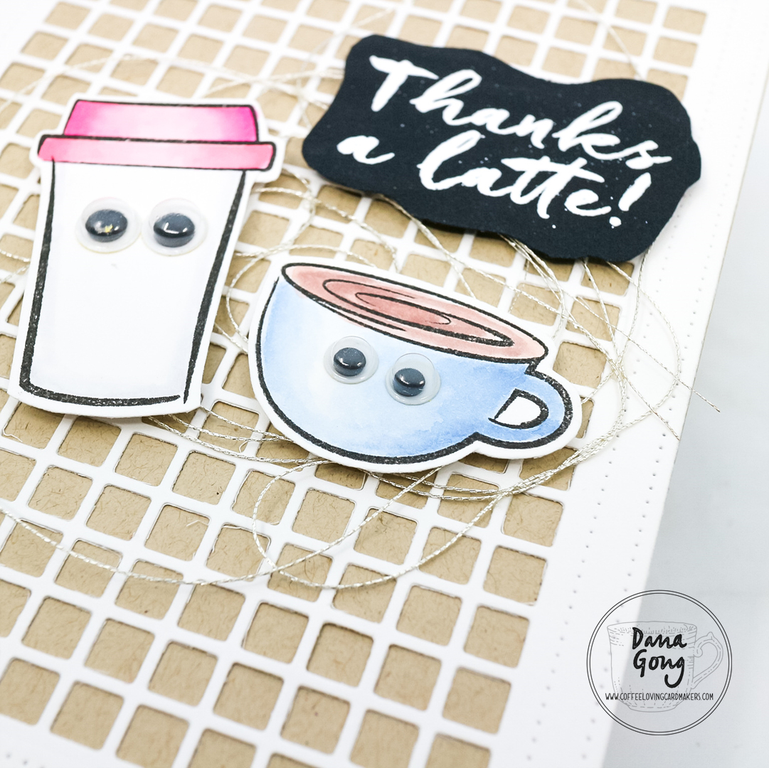 First, I started by stamping cup images from Ellen Hutson Oh Frappe Stamp Set onto bristol paper and cutting them out using scissors. I watercolored them with Zig Clean Color Real Brush Markers.