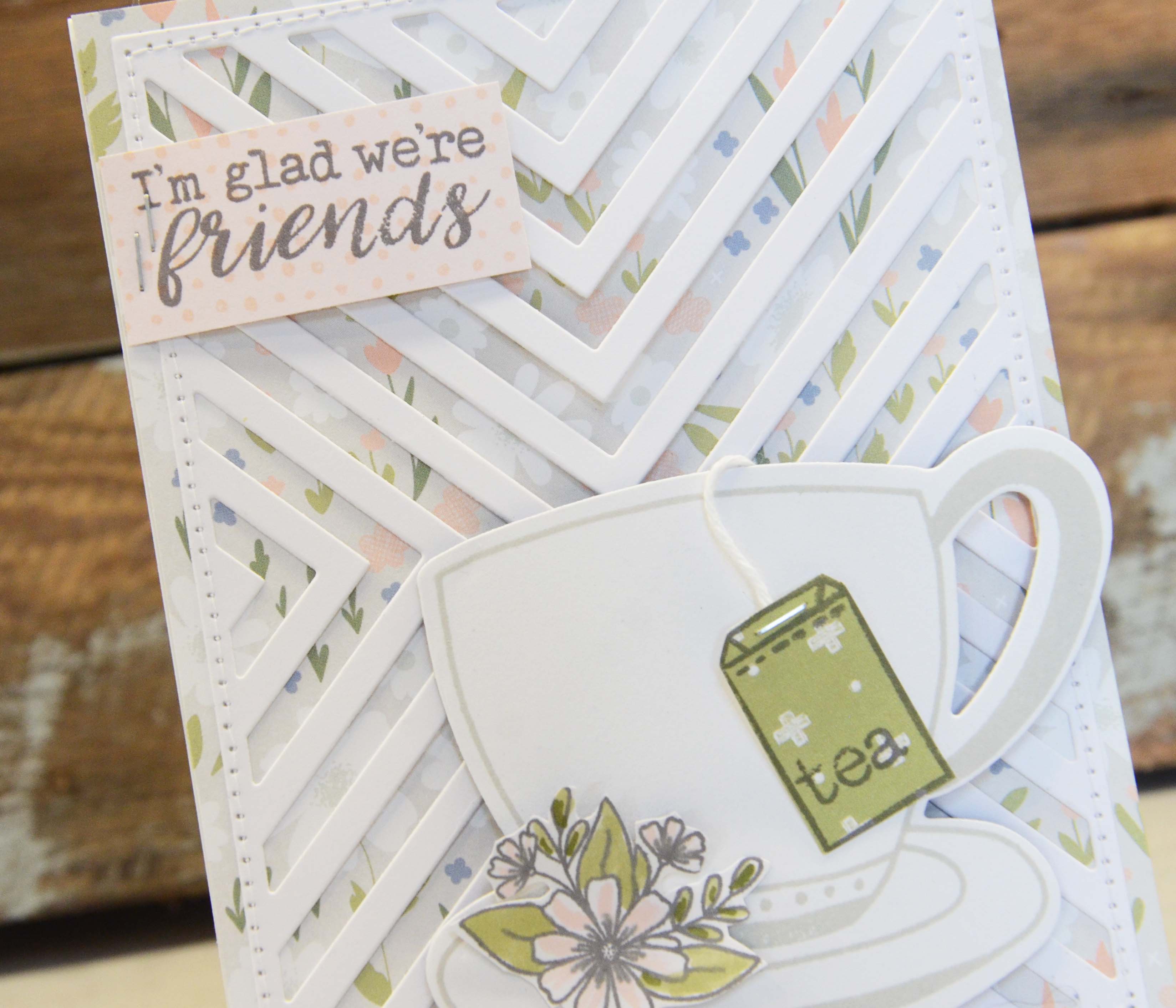 The image is the new My Cup of Tea stamp and die set from CTMH. It was a set I just had to have 😉 I mounted it on foam squares for some dimension.
