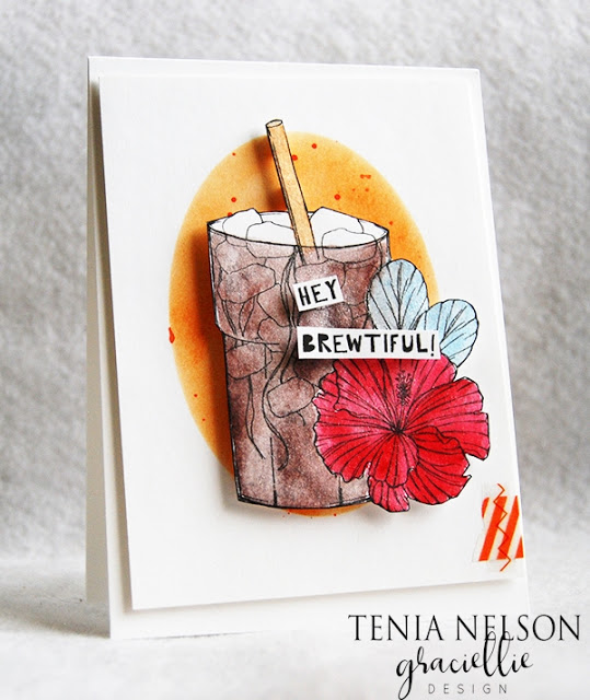 Love the summer coffee vibes with the pop of red and a bit of sparkle.  So refreshing.