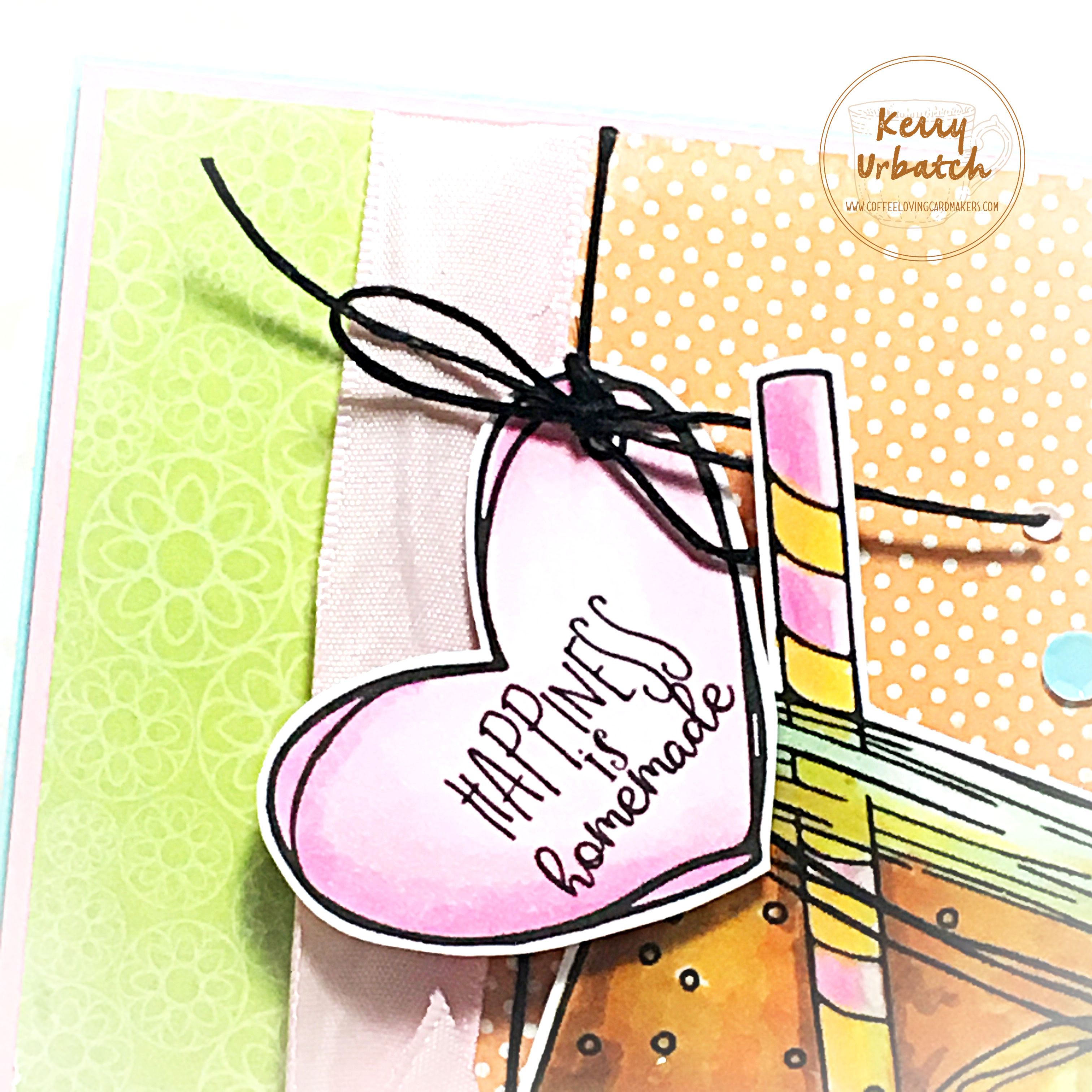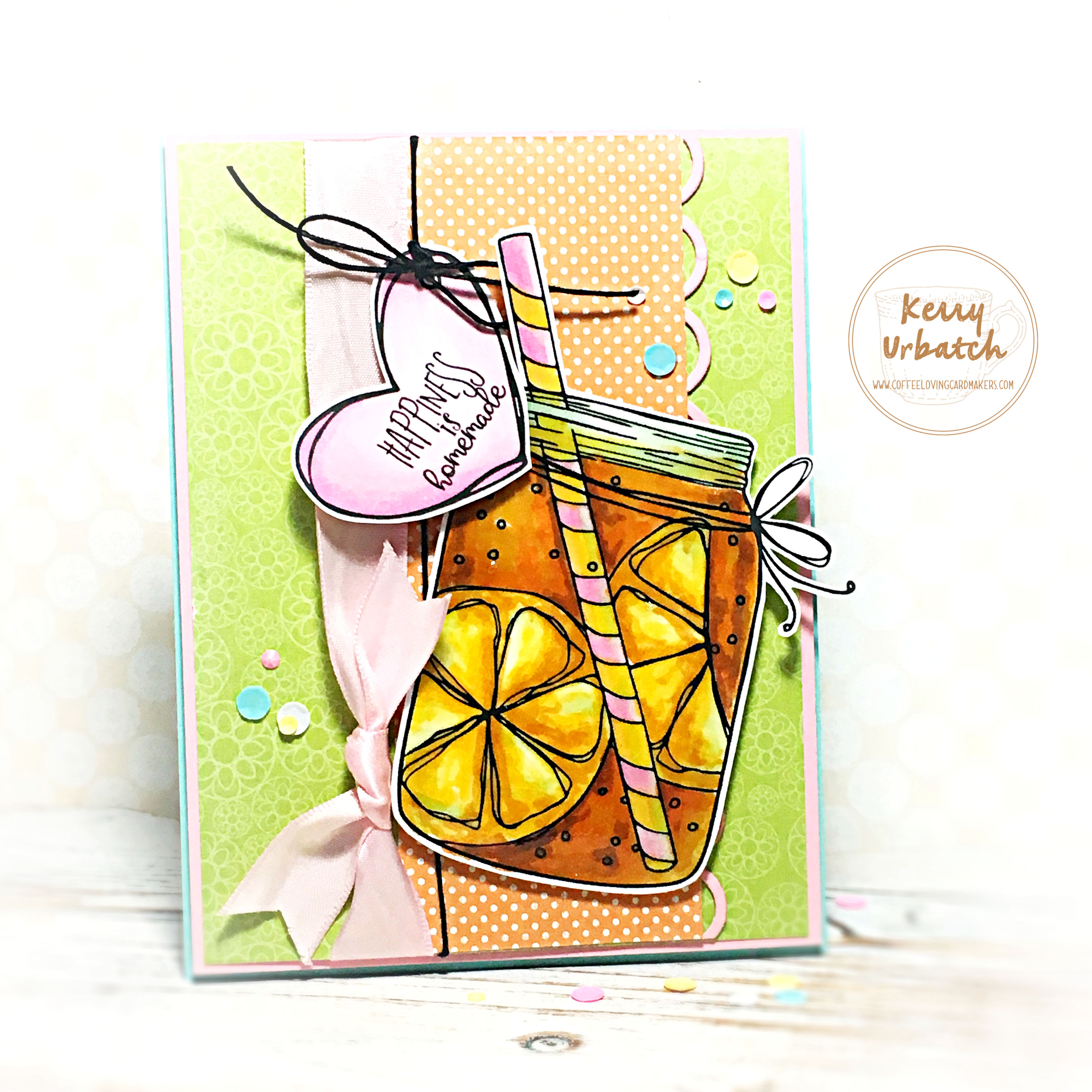 Hello there coffee/tea cocoa-loving cardmakers. It’s Kerry here and I’m back with another fun Sunday Sip! Today I’m featuring a deelish sun tea card using the digital images in Graciellie Design called “Happiness is Homemade”. It’s a great set full of awesome sentiments and a big beautiful mason jar full of tea.
