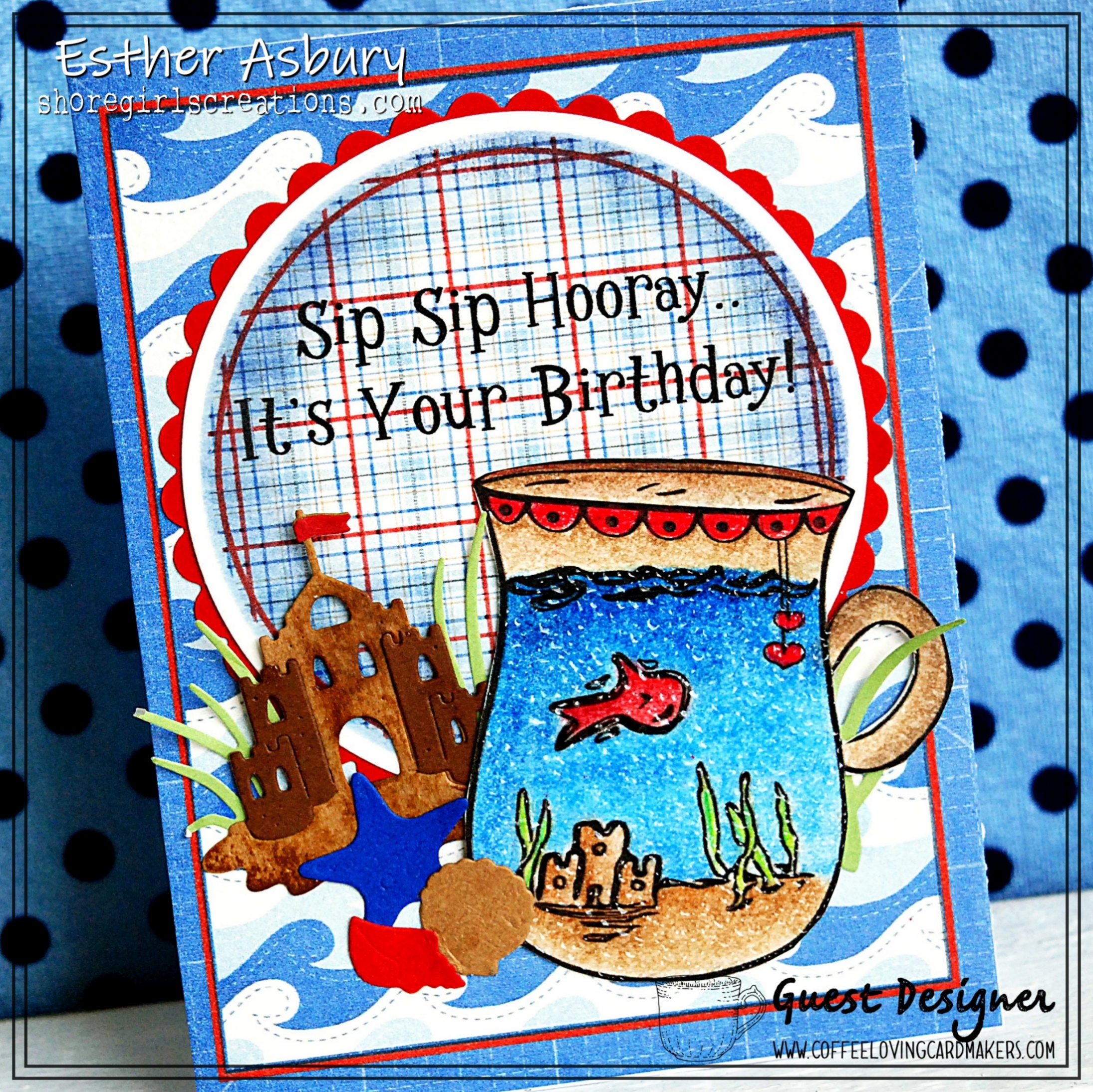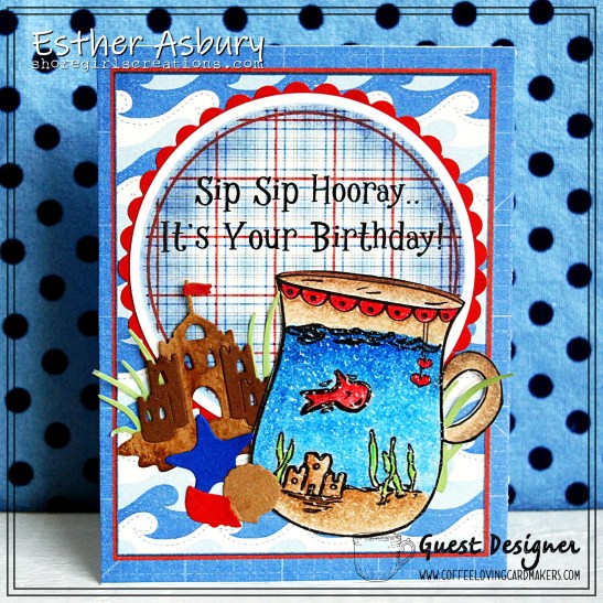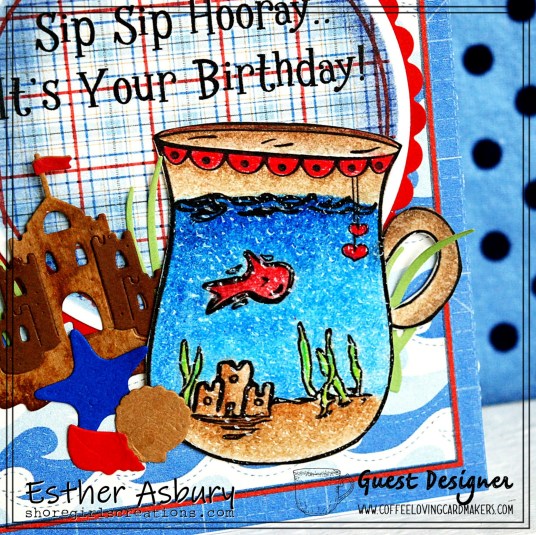 Hello Friends….Esther Asbury here announcing that I’ll be guest designing for you in the month of July! Today I have a fun fish themed card to share with you, so let’s get started….