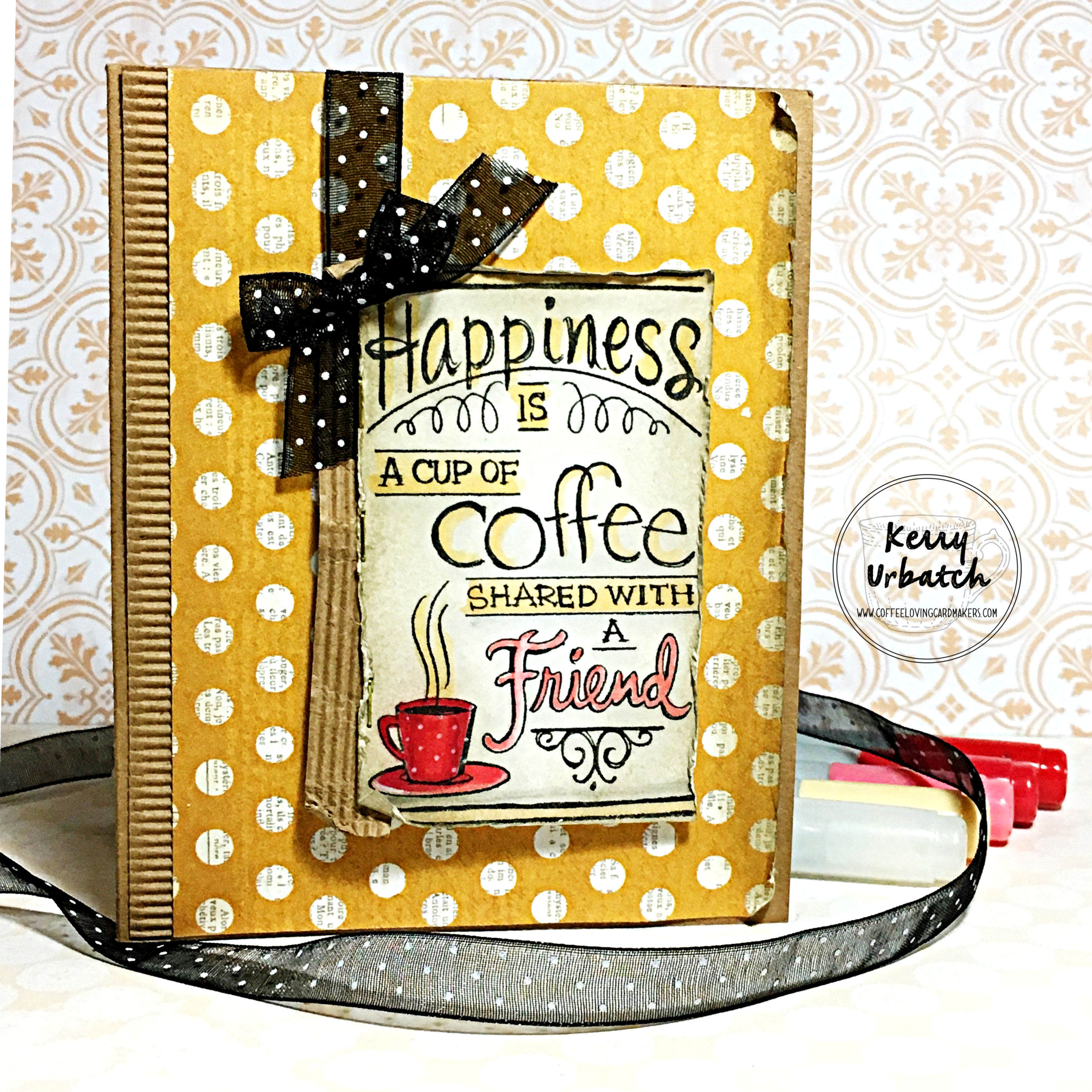 Hey there coffee loving crafters!  It’s Kerry here and I’m back with another Sunday Sip!  This week I decided to dig into my stash and use one of my long forgotten stamp images.  Remember this stamp from Stampendous?  It is an oldie but a goodie so I don’t think I’ll ever give it up…The double perk (pun intended) to this stamp is that it is a woodblock and red rubber!  WOO!  Would you believe that this stamp IS still available for purchase on the Stampendous site?  YEP!  Check it out HERE.