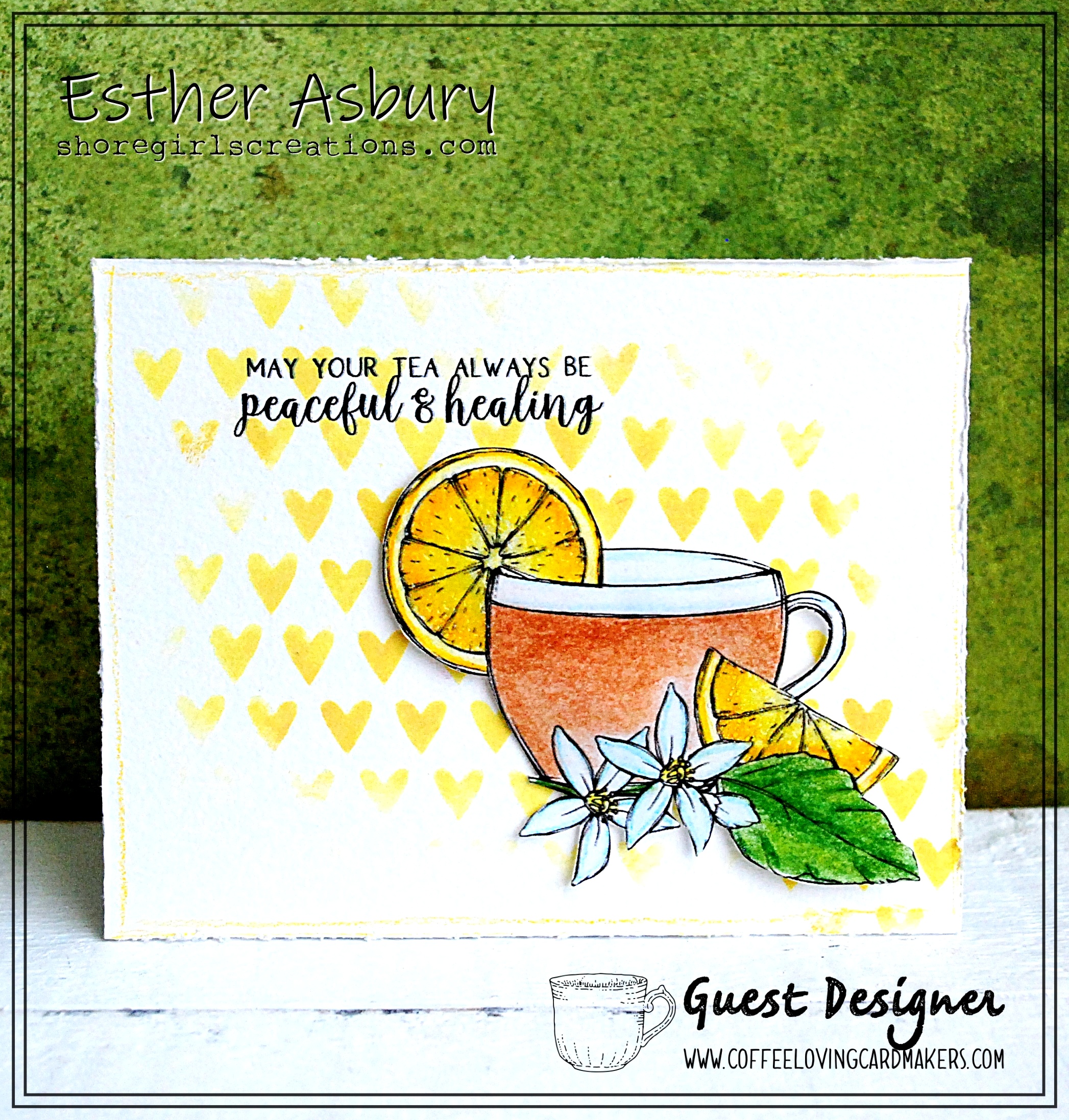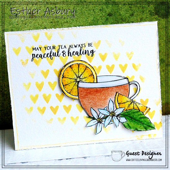 Hello friends. Esther Asbury here, and I’m back for my second post as guest designer this month. Today I’m sharing a clean-and-simple card with one of Graciellie Designs new releases — “Tea For The Soul.”