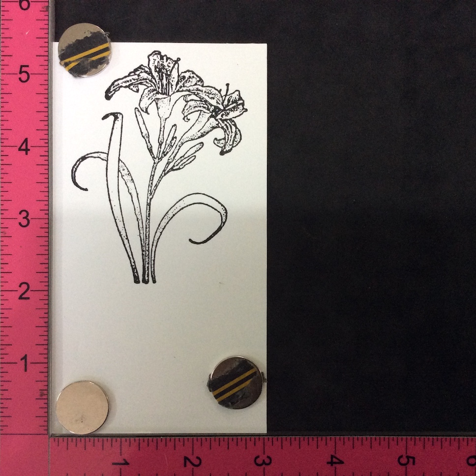 I used my Misti Stamping Tool to stamp the Daylilies image (Anthony’s Paper Craft) on to the piece of white cardstock.