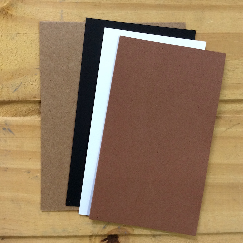 I started with a top folding A2 card base of Kraft cardstock, a piece of white cardstock cut 3″ x 5.5”, a piece of black cardstock cut 3.25″ x 5.5″, and a piece of brown fun foam cut just a smidge smaller to adhere under the black cardstock.
