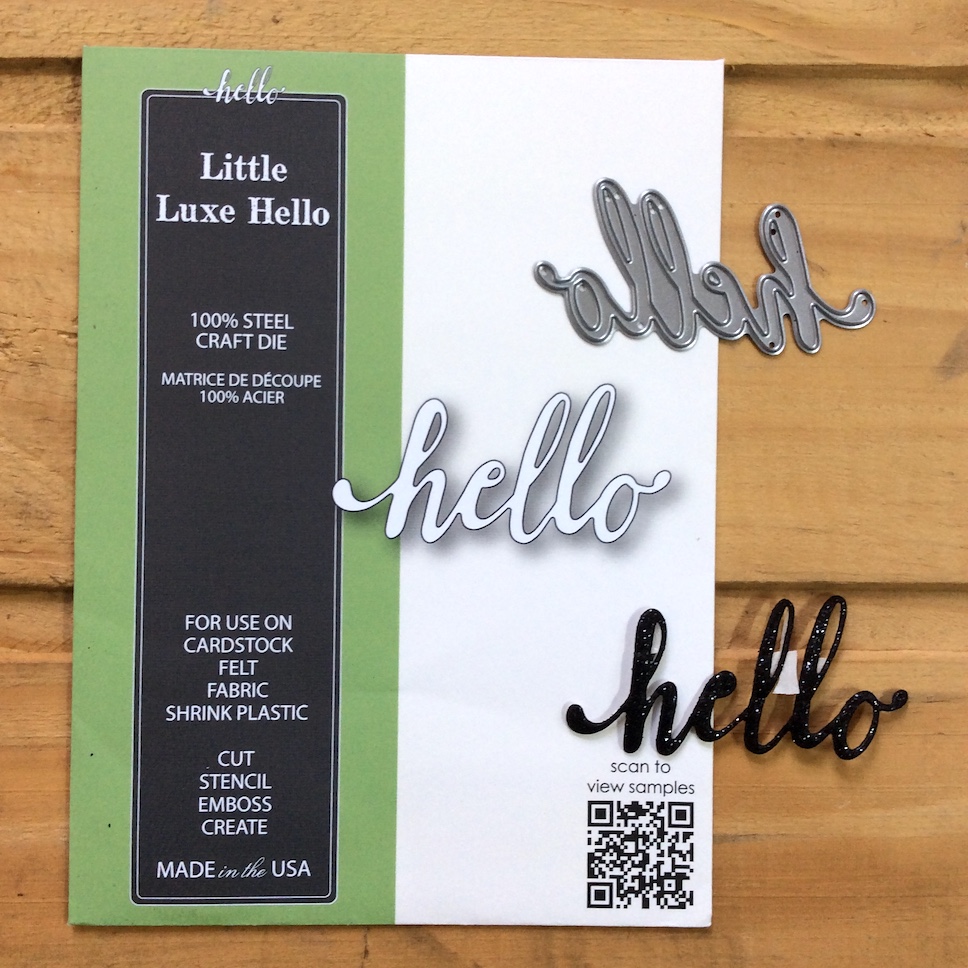 Next, I die cut the Large Coffee On the Go die (Memory Box) using a piece of Kraft cardstock and a small piece of decorative paper.  Then I die cut Little Luxe Hello (Poppy Stamps) using a piece of black glitter fun foam with a piece of double-sided tape to the back.