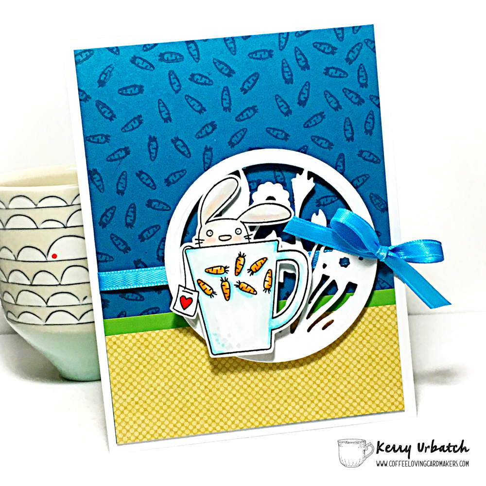 Hello there coffee/tea/cocoa loving crafty peeps!  It’s Kerry here and I’m back with another fun Sunday Sip.  This week I’m playing with an irresistible little bunny in a cup by The Cat’s Pajamas.  I just smile every time I see this little bunny and when it peeks out of a cuppa tea, well, I’m stuck!  I just had to play with it!