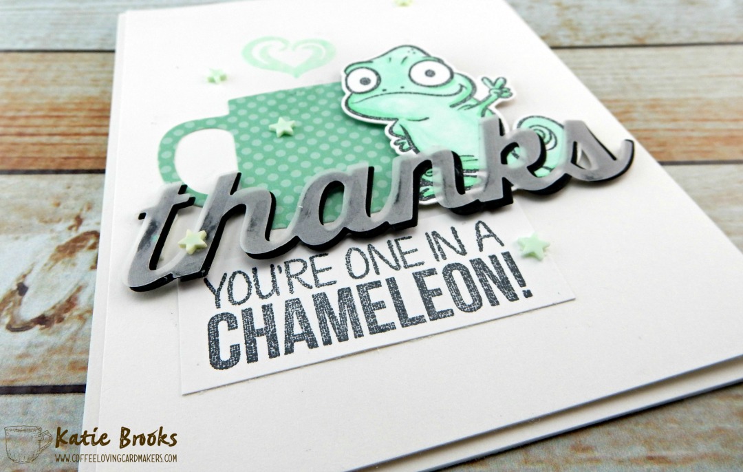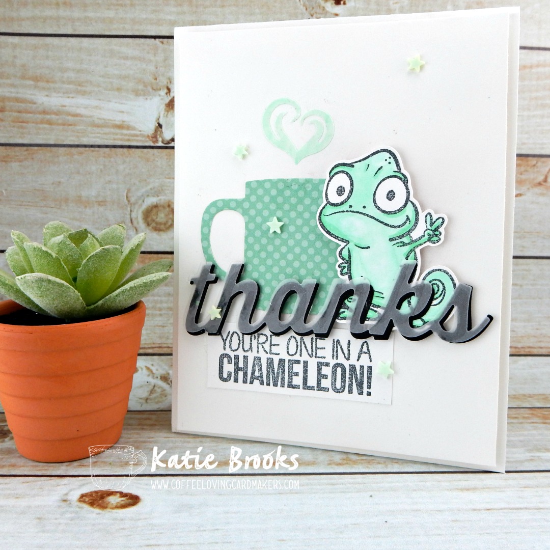 - I started by stamping out the Your Next Stamp chameleon on and sentiment on white.