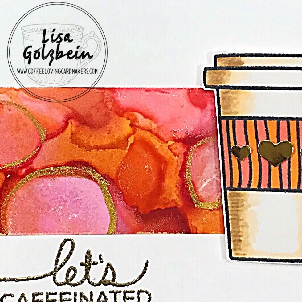 I just love the combination of the pink and orange alcohol inks and the gold